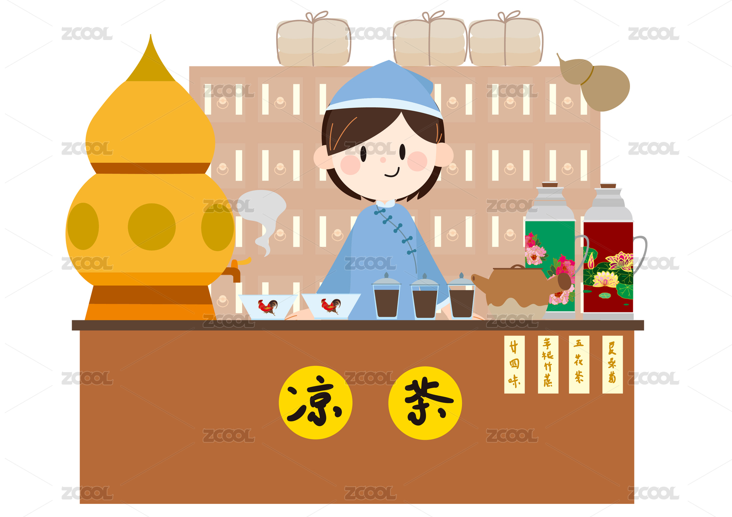 矢量傳統(tǒng)廣東涼茶涼茶店中藥店物品草藥中醫(yī)