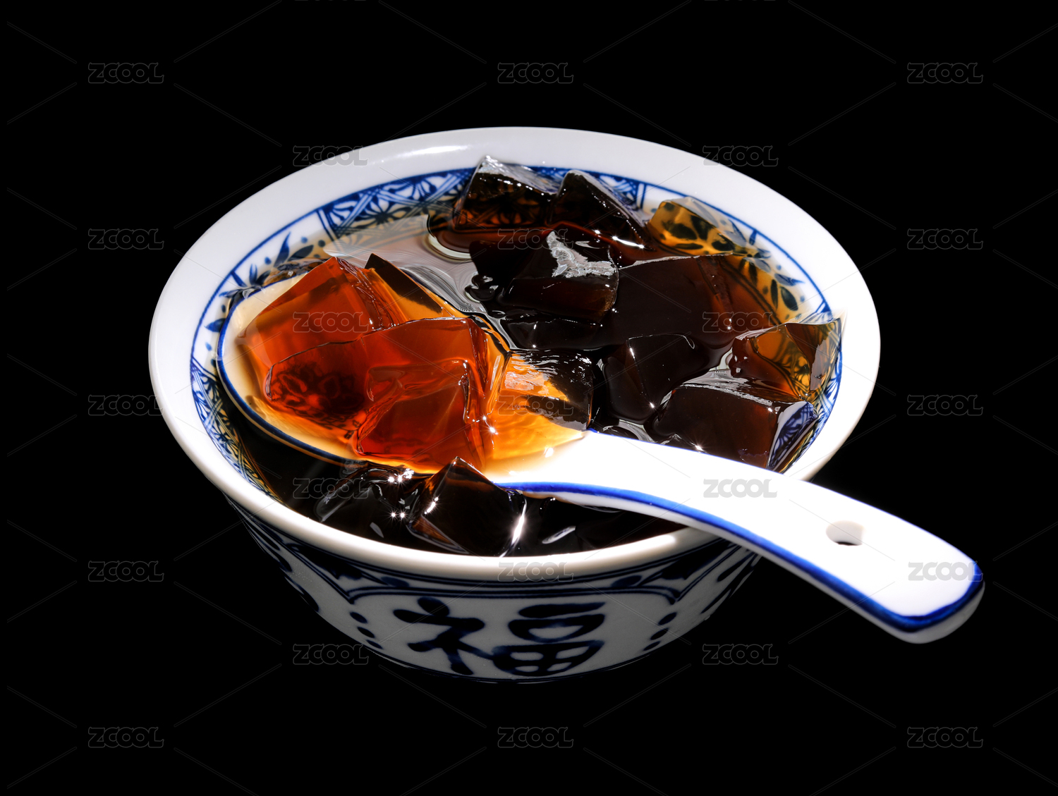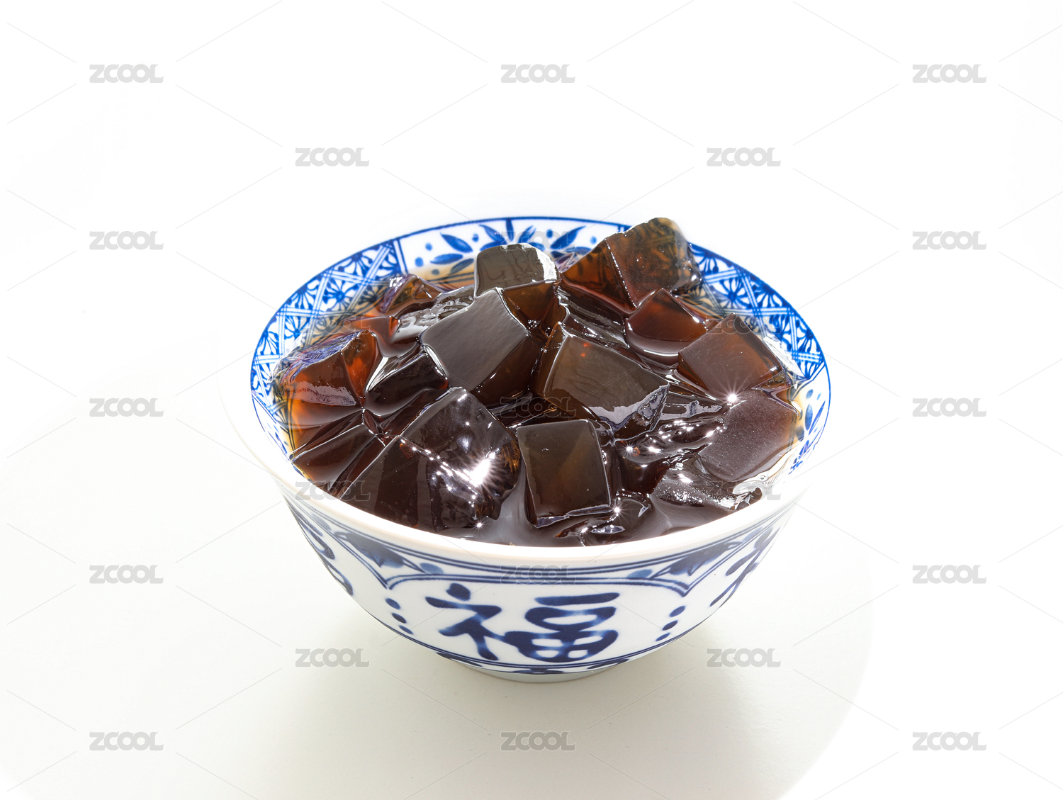 白色背景上的一碗廣東特色糖水涼粉龜苓膏