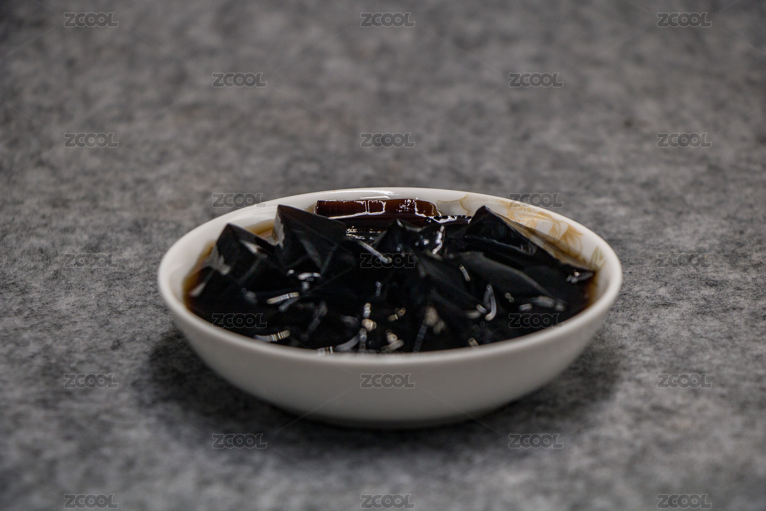 黑色背景上的一碗廣東特色糖水涼粉龜苓膏