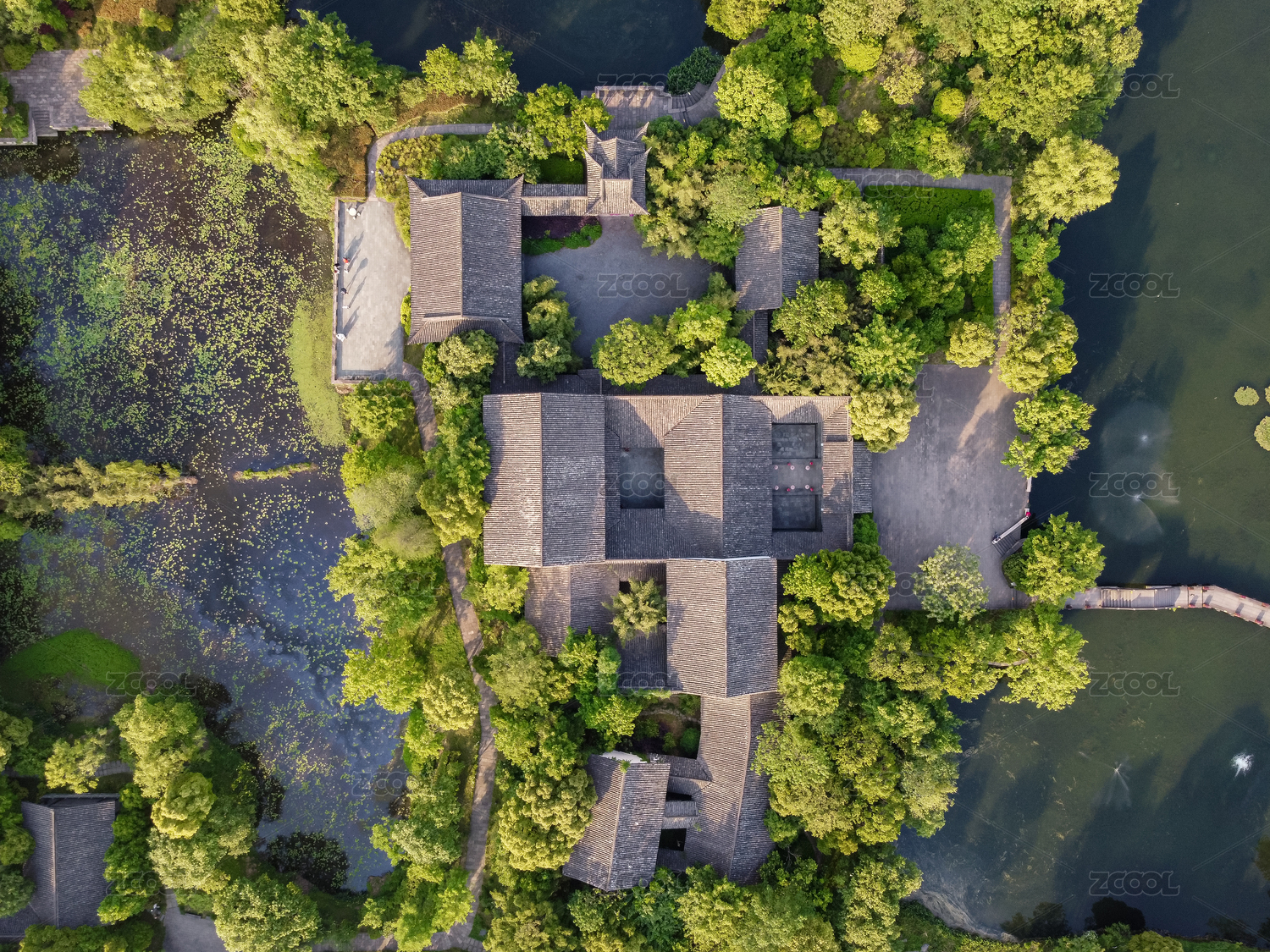 全景航拍杭州西湖雷峰塔風景區(qū)