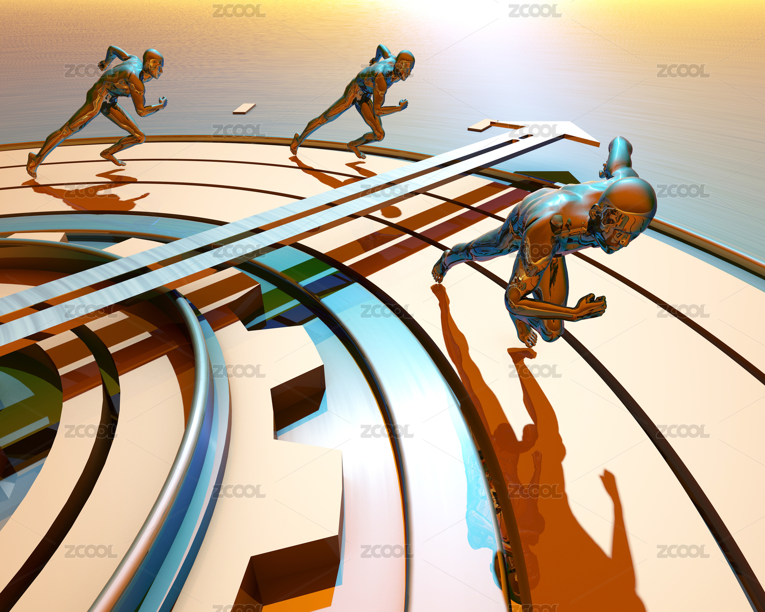 科技人類在表盤上奔跑,爭分奪秒,努力奮斗,時間就是金錢
