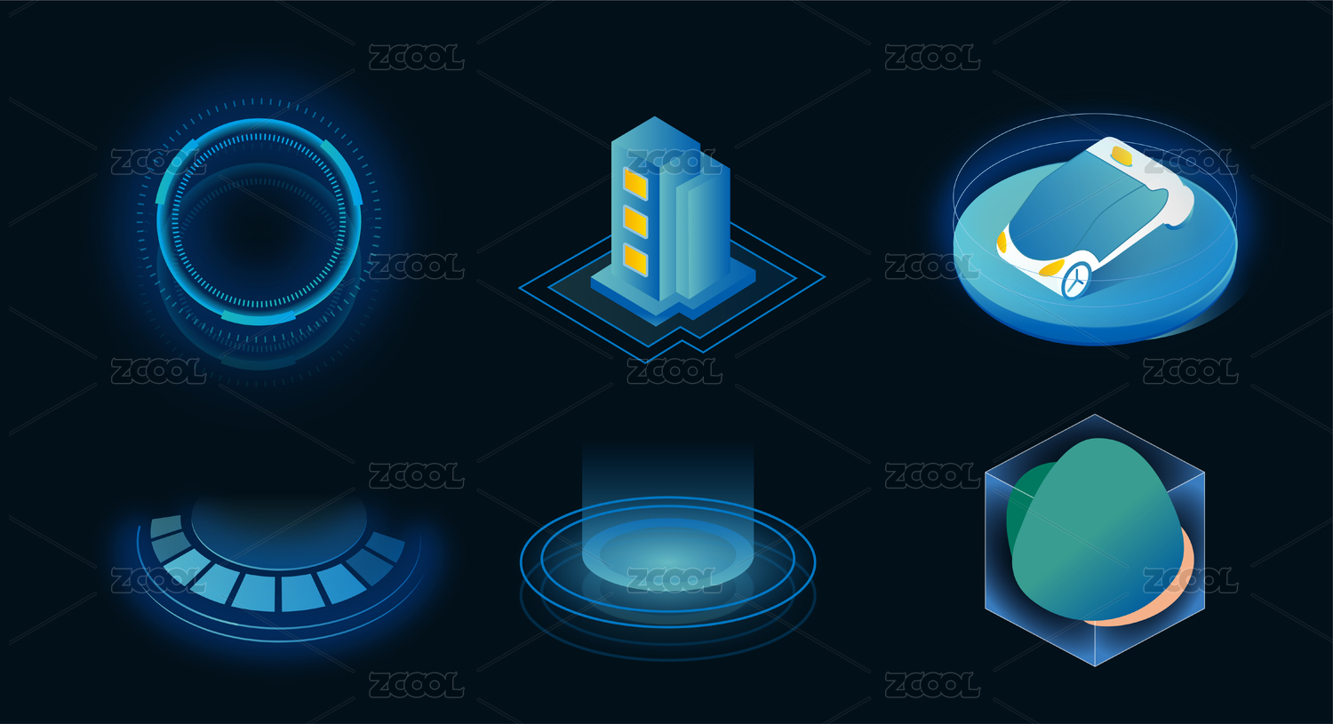 科技元素、環(huán)形圖、儀表盤、圖表、彈框