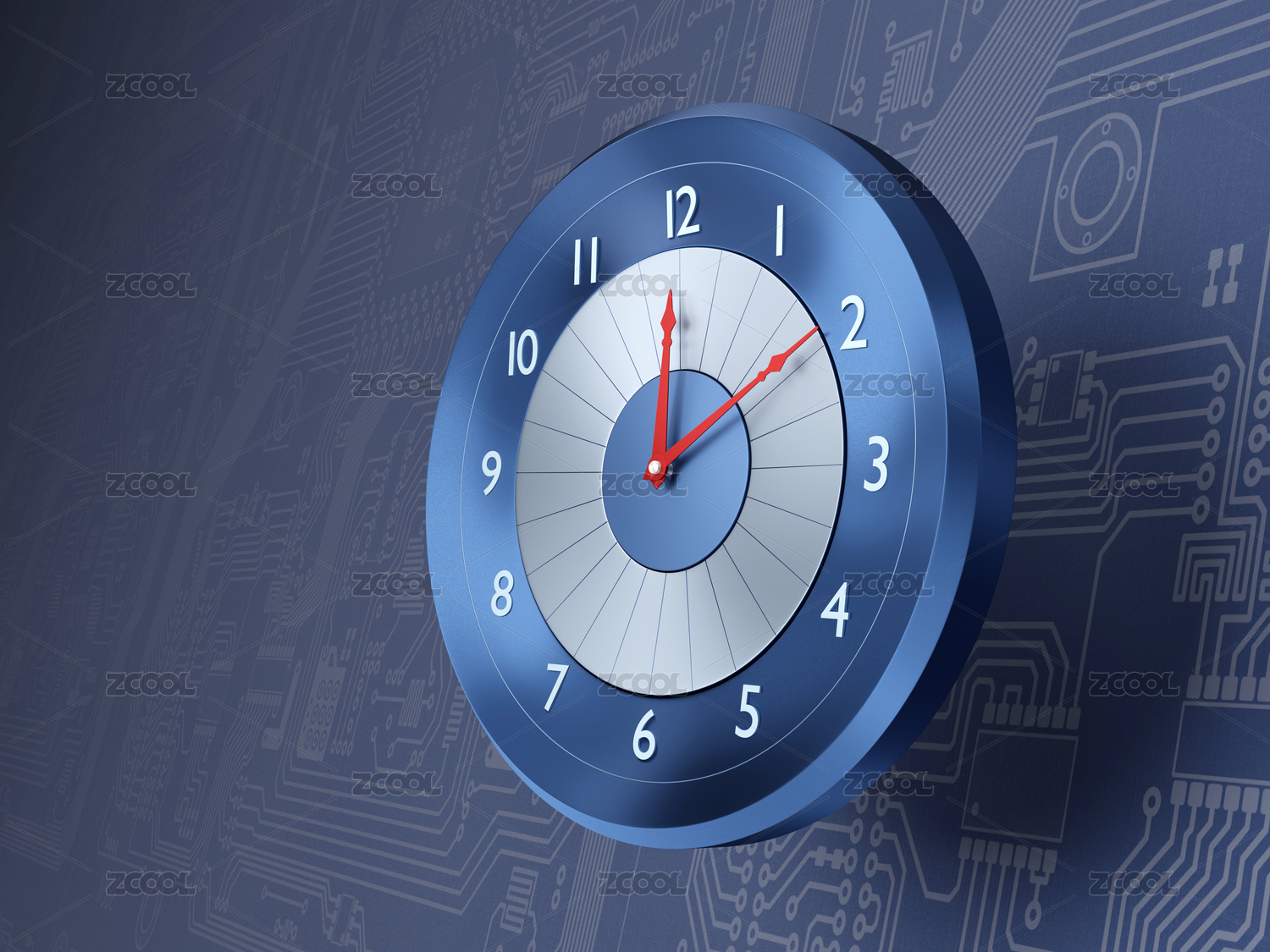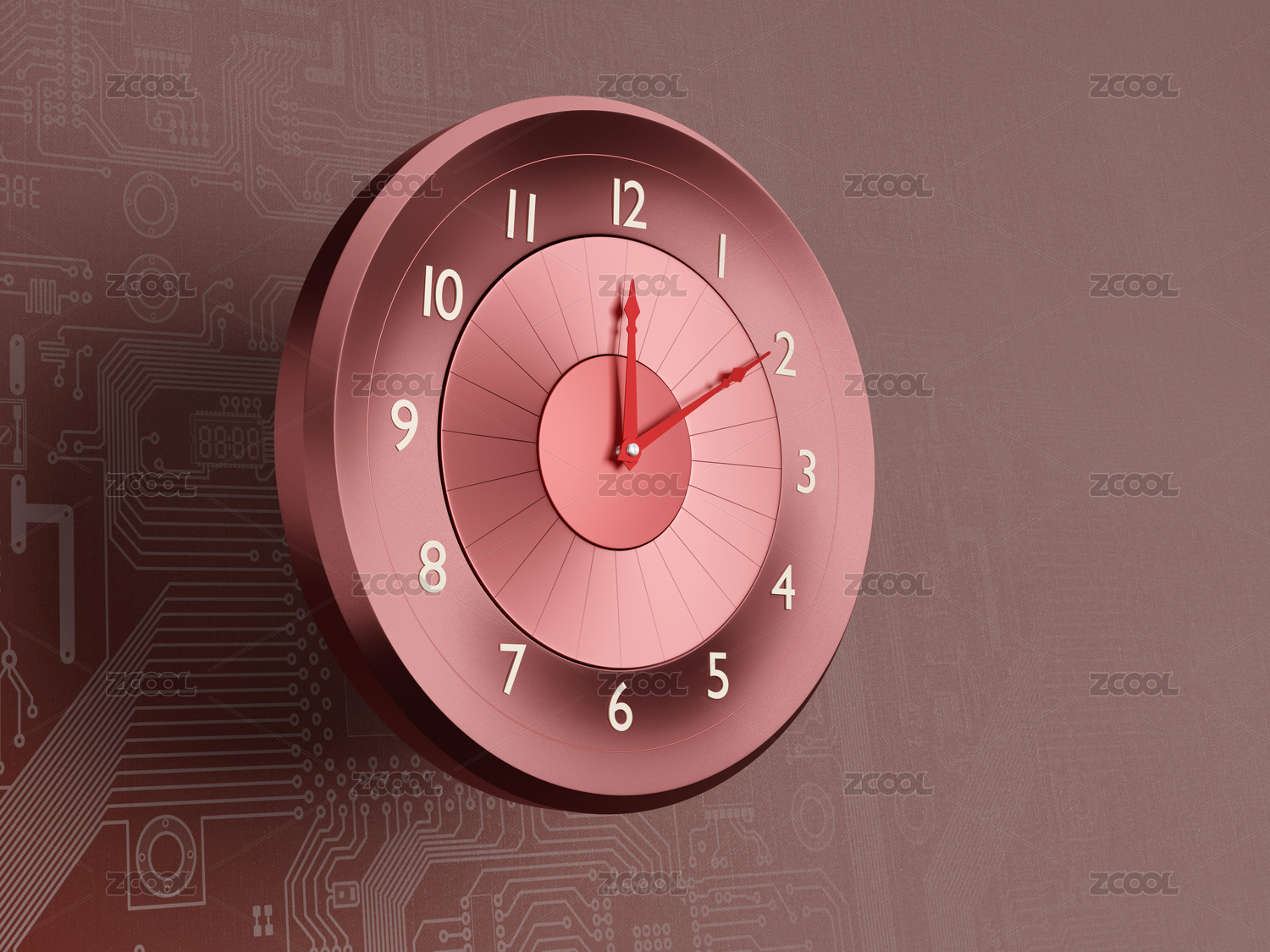 紅色電路圖上的商務時間鐘表盤