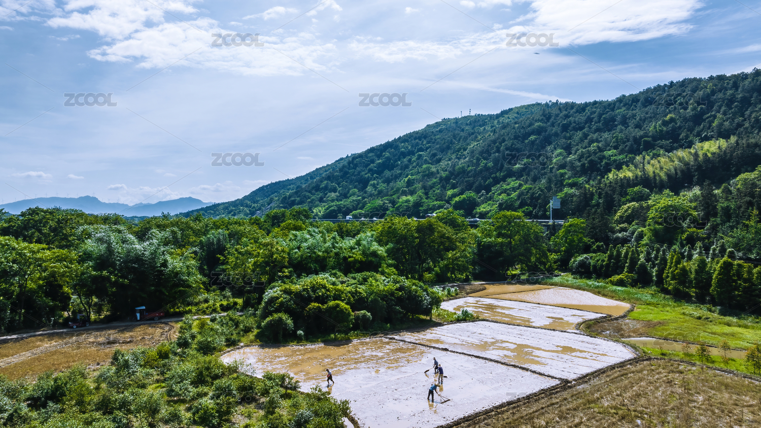 春天里浙江建德鄉(xiāng)村稻田耕種田園風(fēng)光