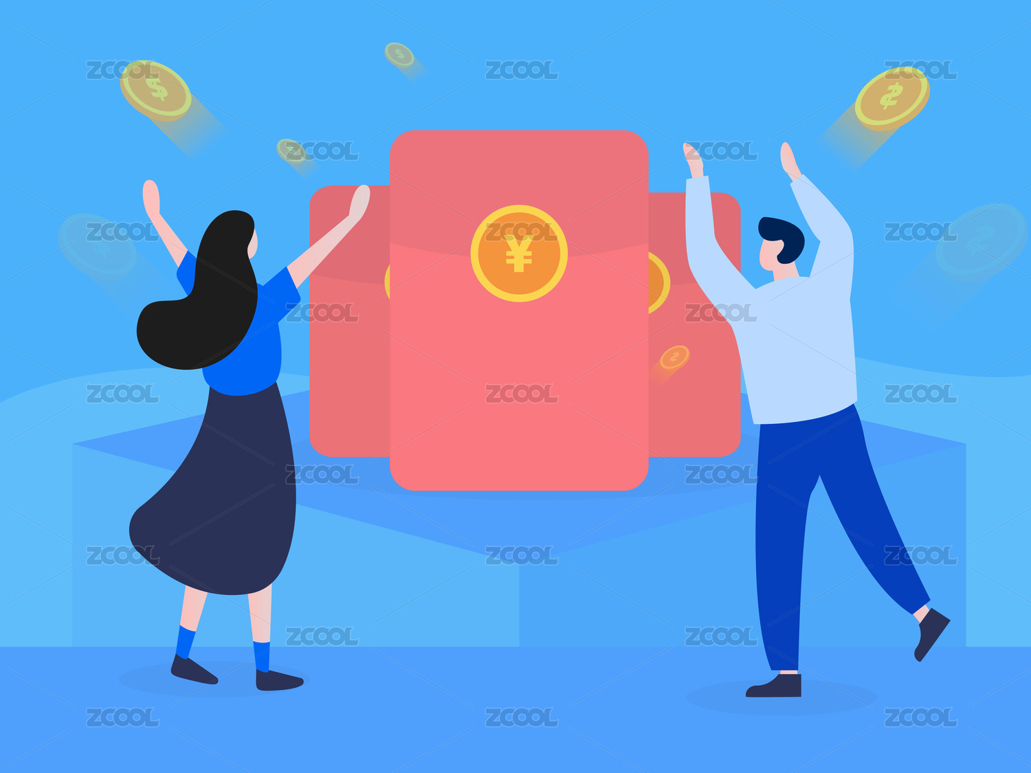 邀請好友得紅包,比特幣,代幣啟動頁互聯(lián)網商業(yè)矢量扁平人物插畫