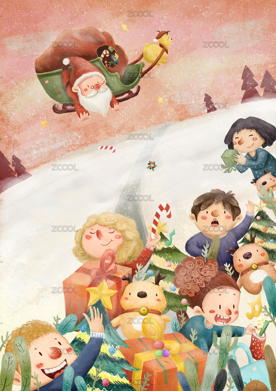 圣誕手繪插畫海報啟動頁