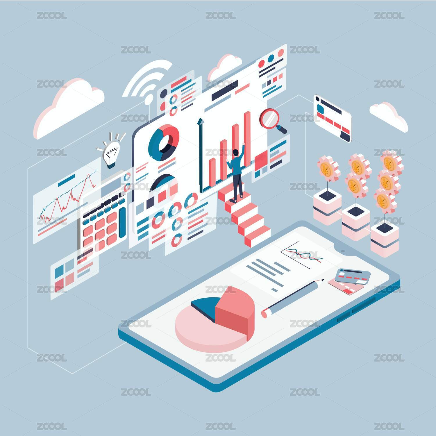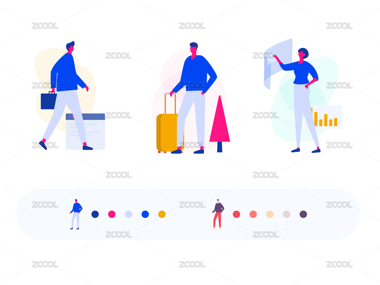 工作去上班,出差旅游,辦公,數據分析,啟動頁互聯(lián)網商業(yè)矢量扁平人物插畫.eps