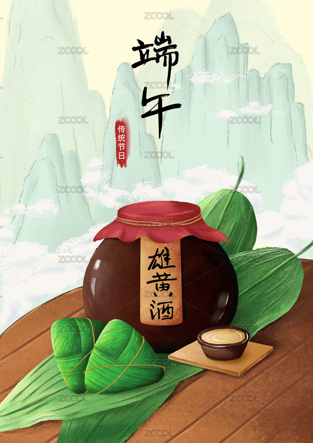 古風中國風端午節(jié)素材啟動頁海報雄黃酒粽子