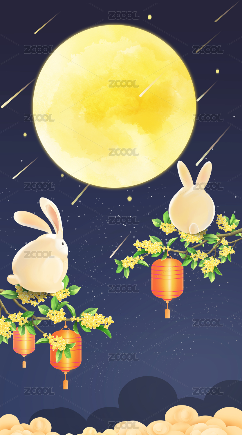 中秋玉兔賞月開屏啟動頁插畫
