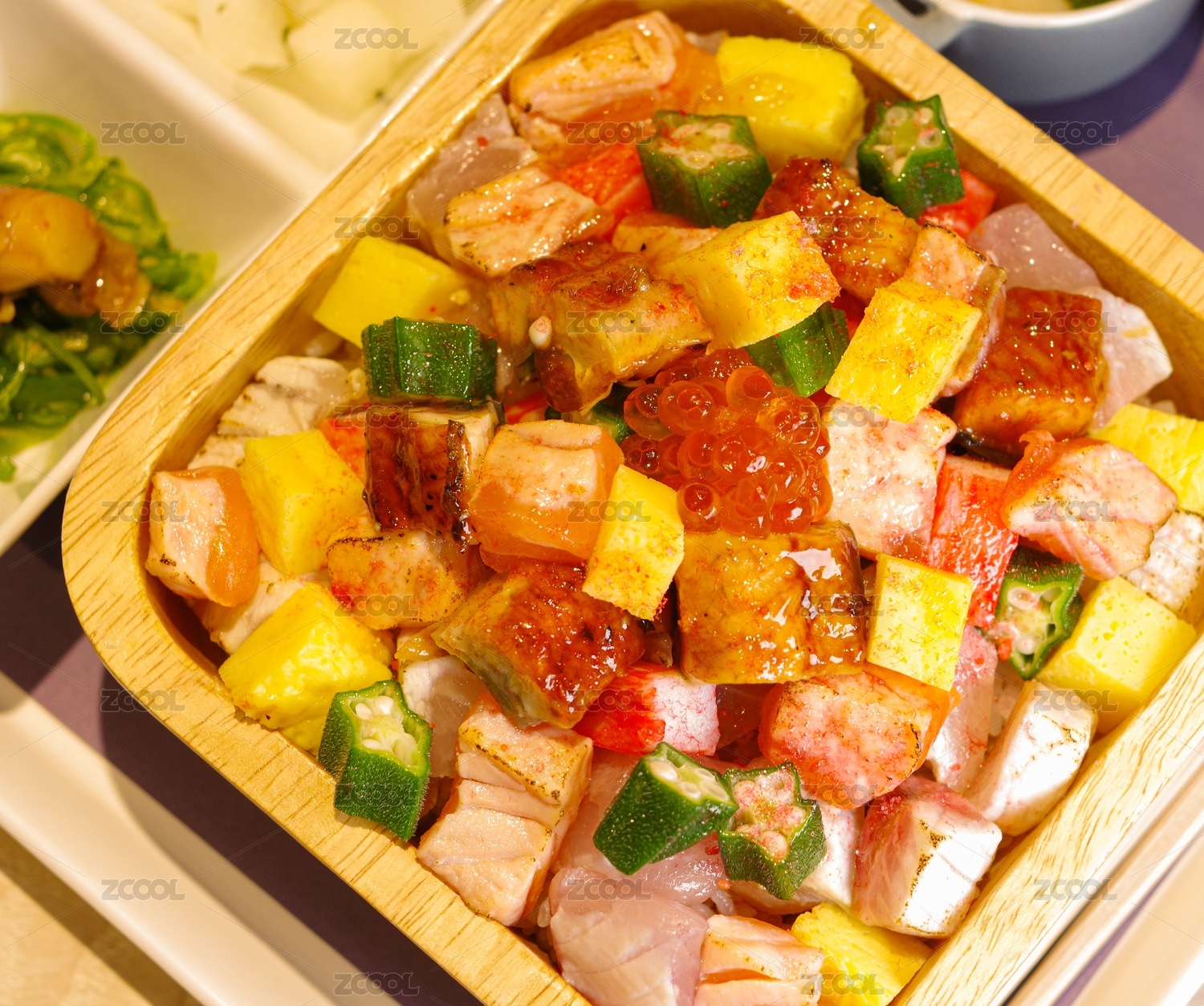 三文魚籽秋葵蒲燒鰻魚飯海鮮丼日式定食特寫