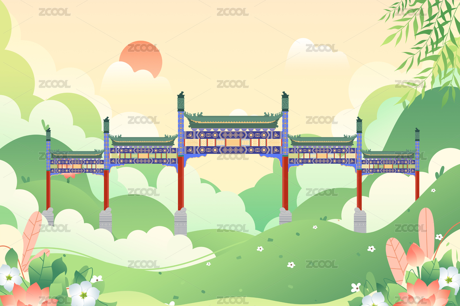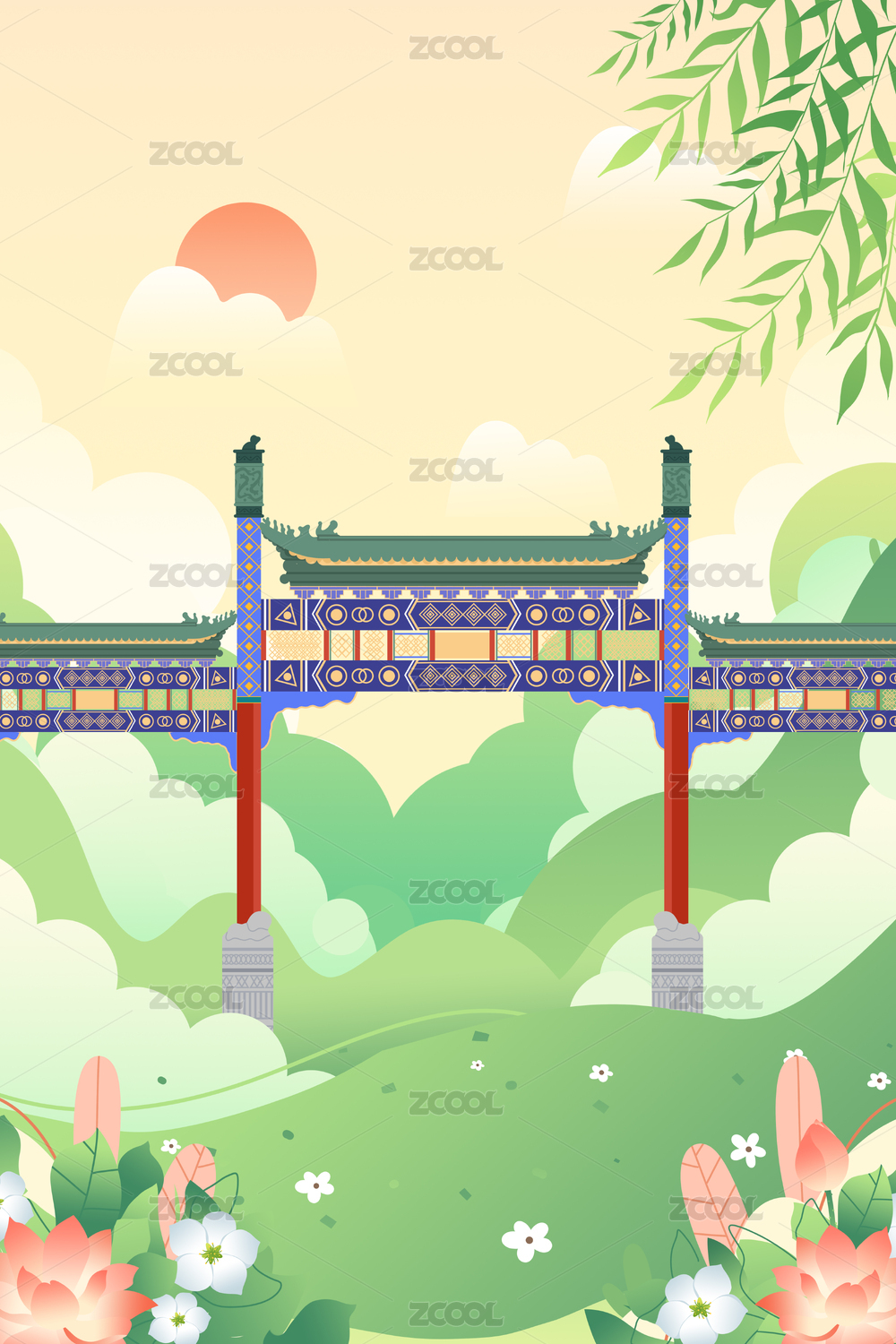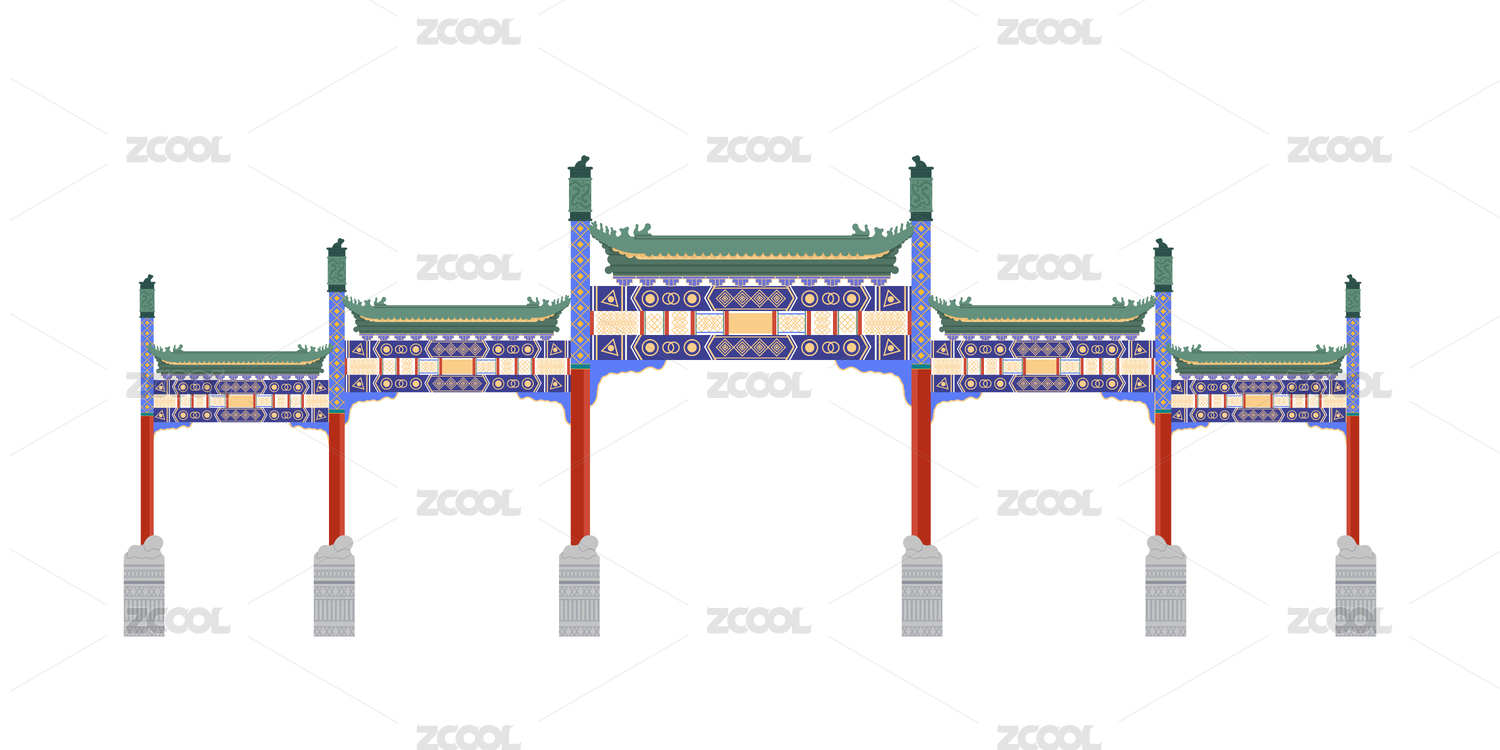 中國(guó)北京前門(mén)大街卡通插畫(huà)