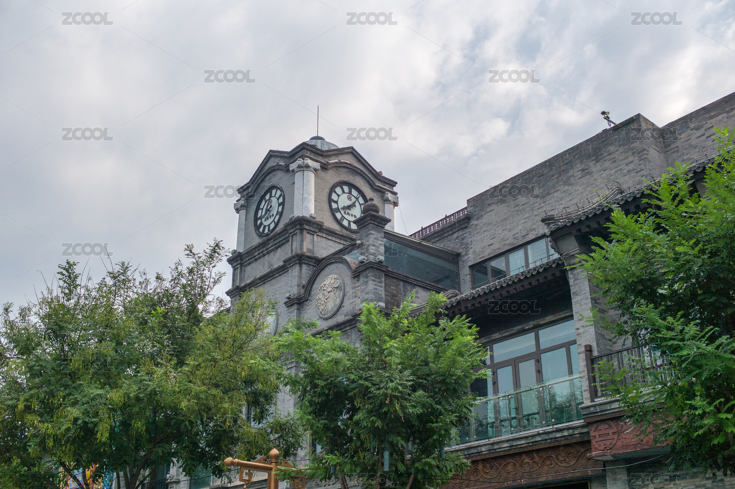 中國(guó)北京前門(mén)大街鐘樓夏季早晨