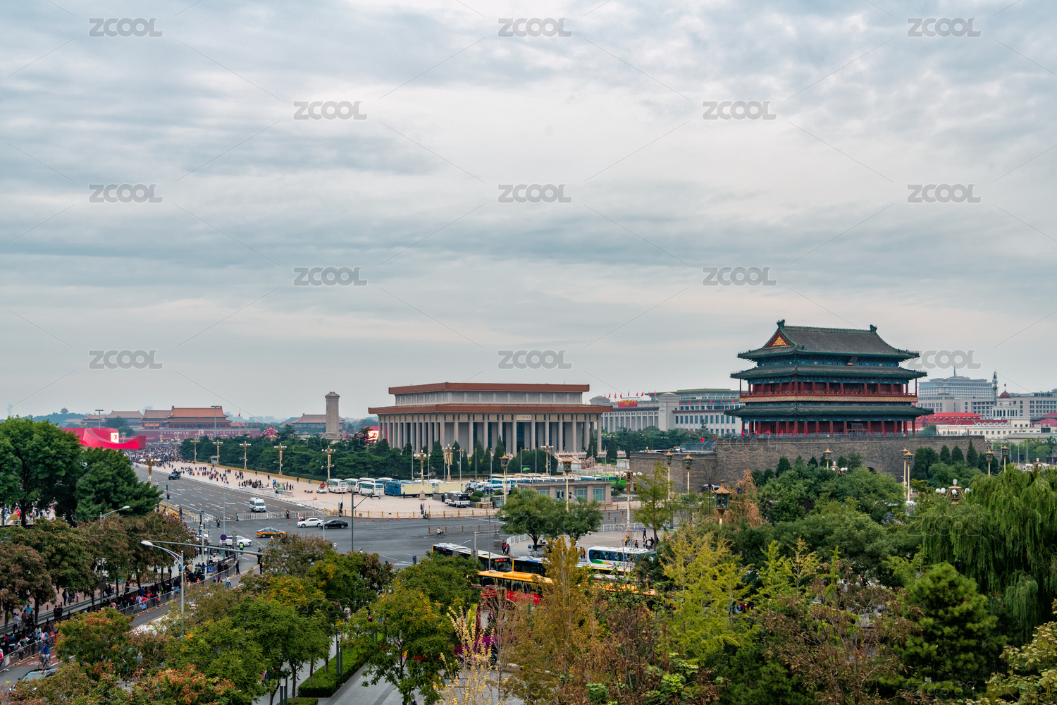北京前門(mén)與天安門(mén)廣場(chǎng)戶外風(fēng)光高視角