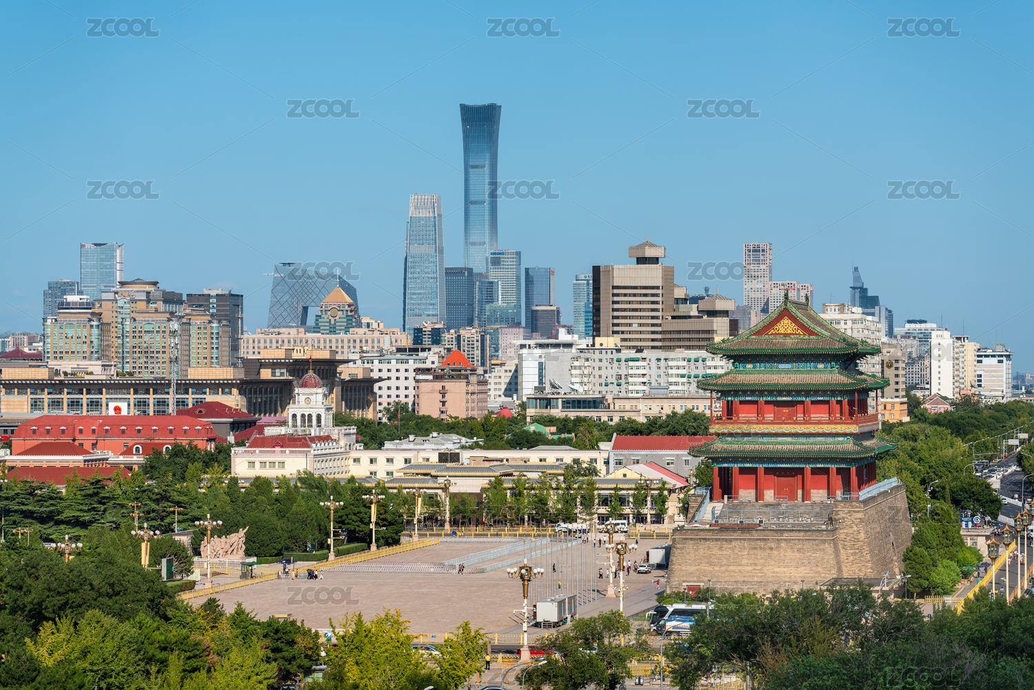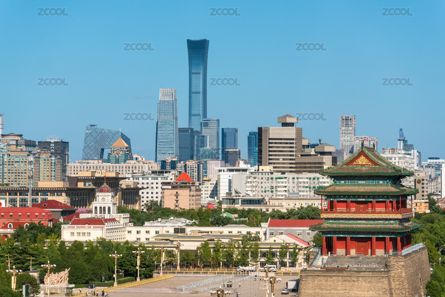 北京市前門(mén)正陽(yáng)門(mén)箭樓古建筑和現(xiàn)代建筑遠(yuǎn)景