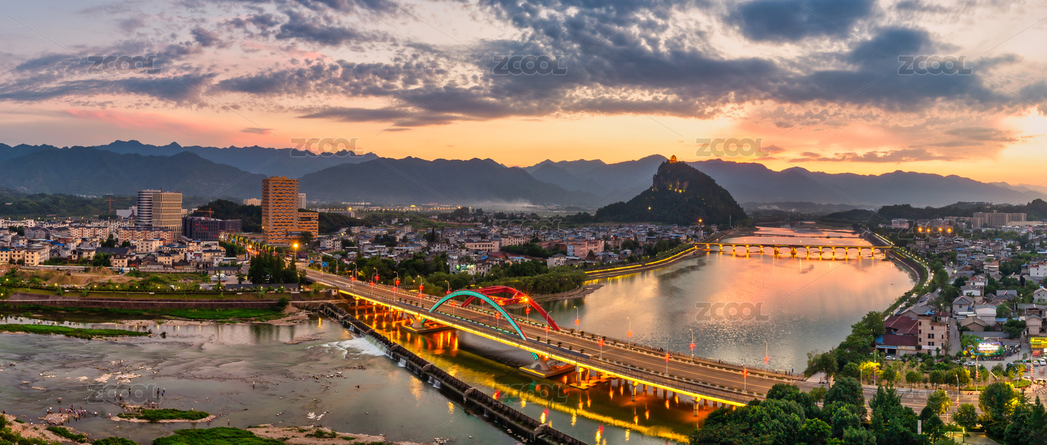 浙江麗水松陽城市地標夜景全景