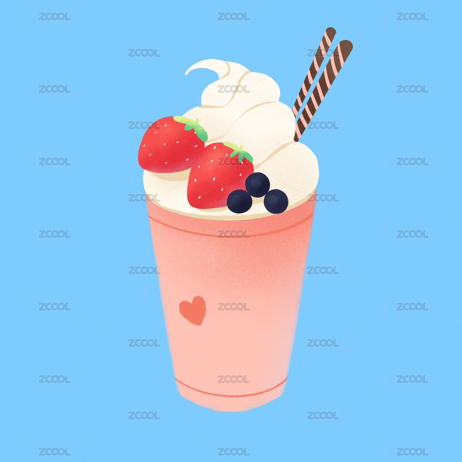 杯子里的冷飲飲料飲品草莓冰淇淋