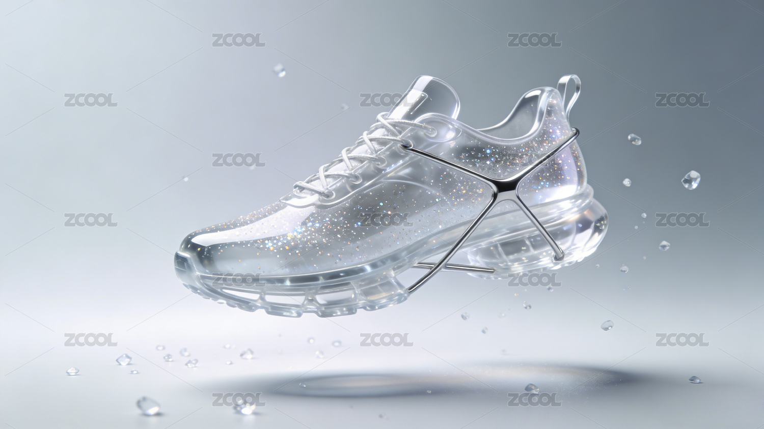 透明質(zhì)感懸浮科技跑鞋閃粉裝飾