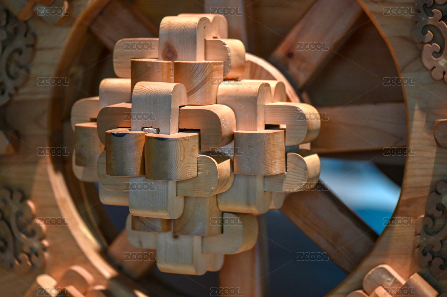 古銅鎖扣與雕花木紋
