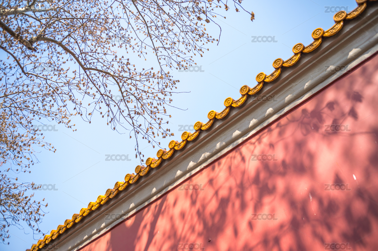 陽(yáng)光透過(guò)建筑灑在故宮的宮墻