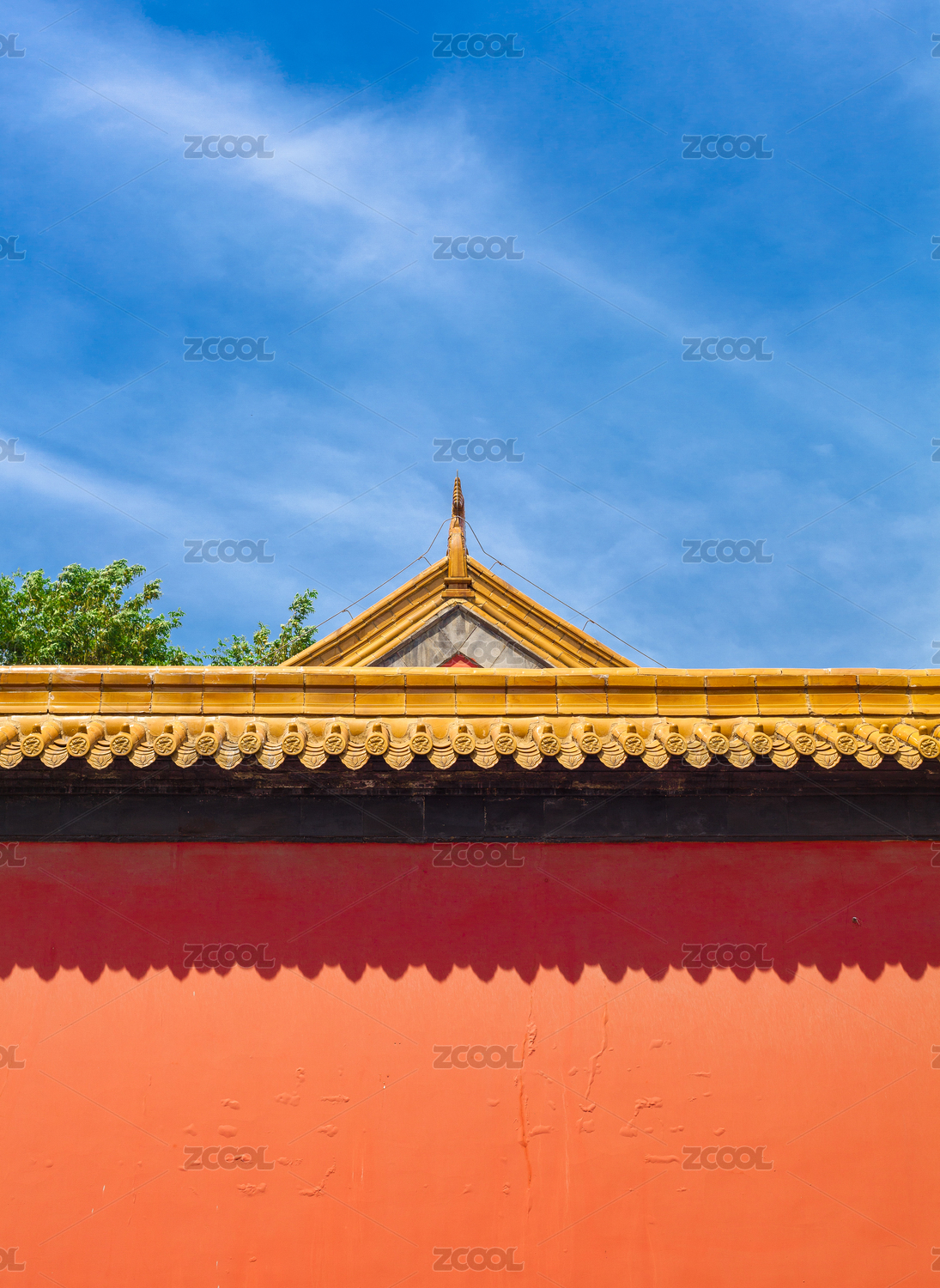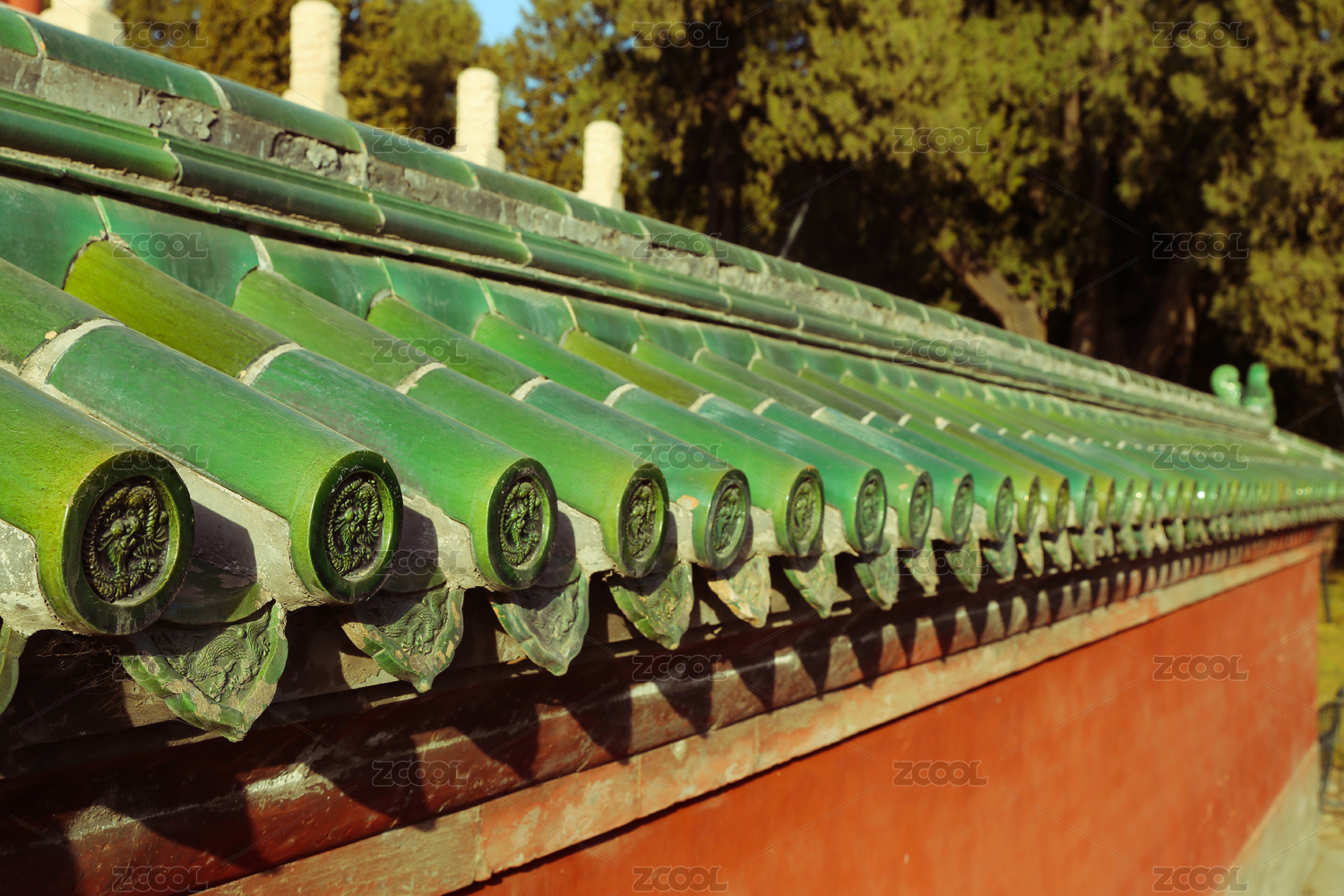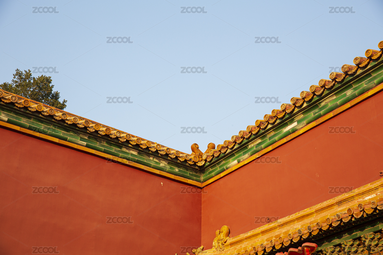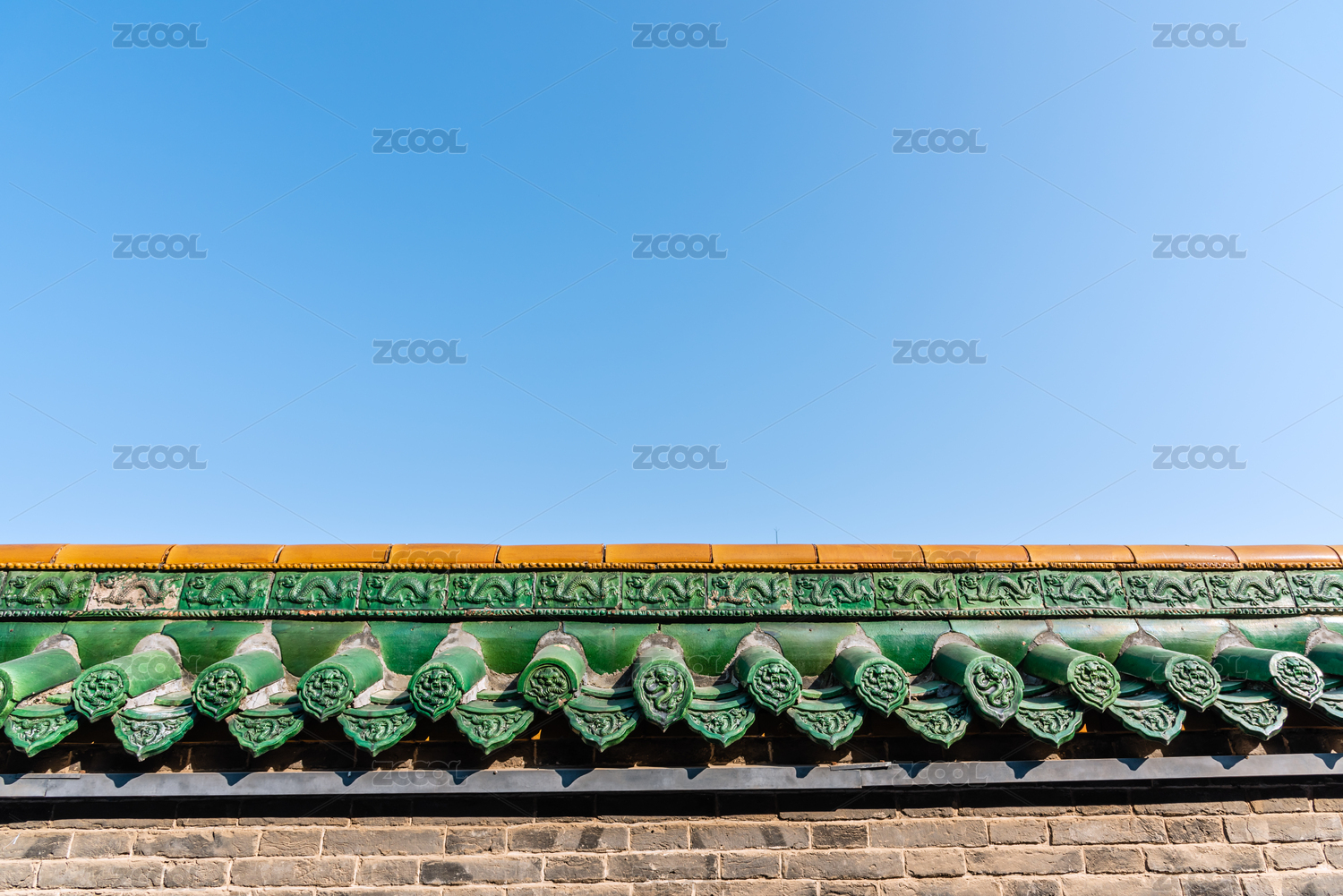 中國(guó)傳統(tǒng)建筑宮殿宮墻綠色琉璃瓦