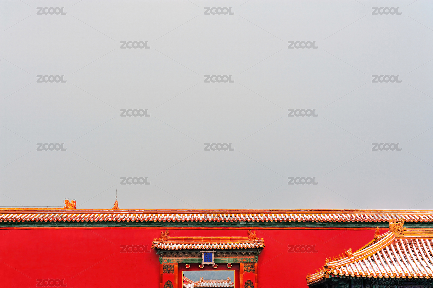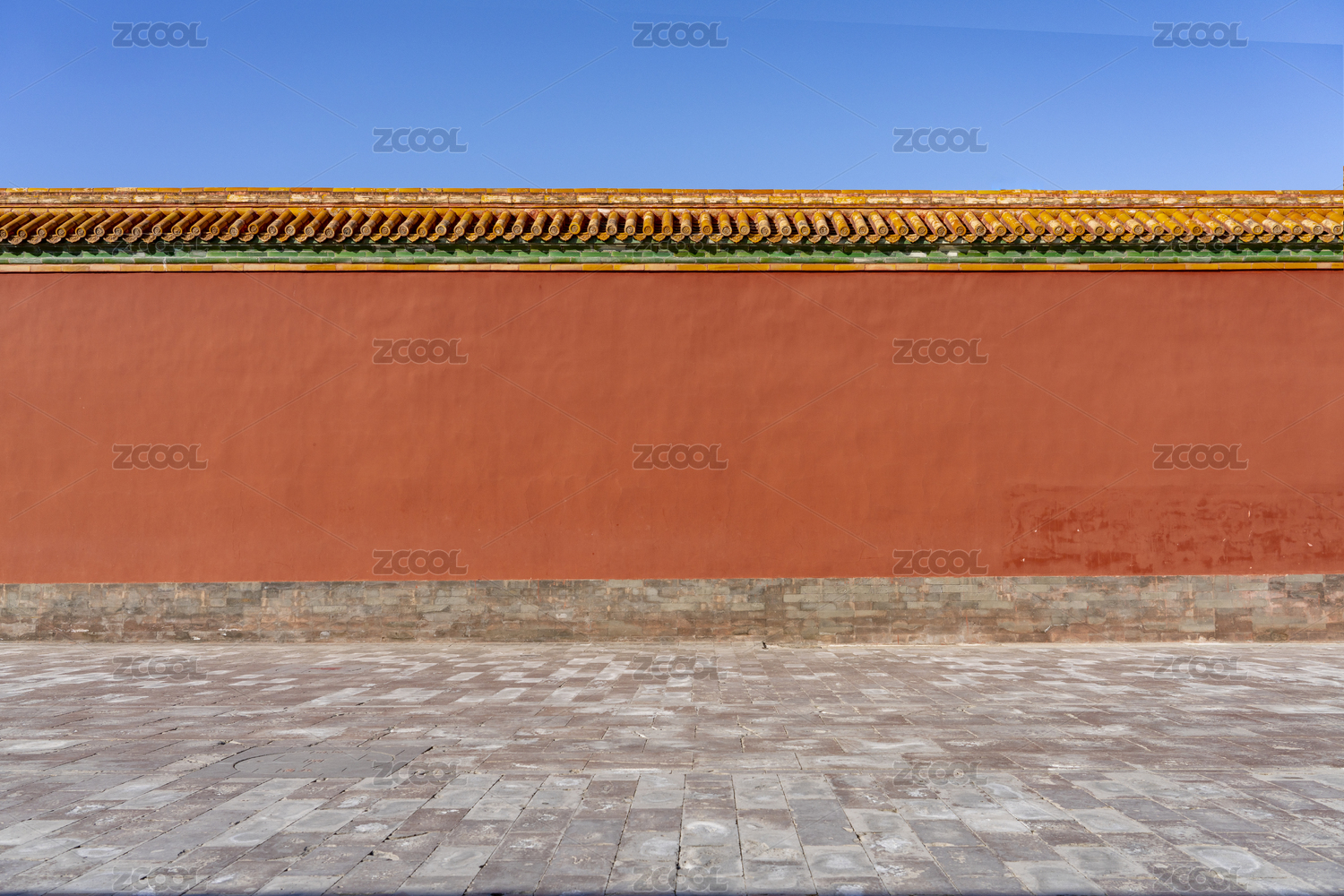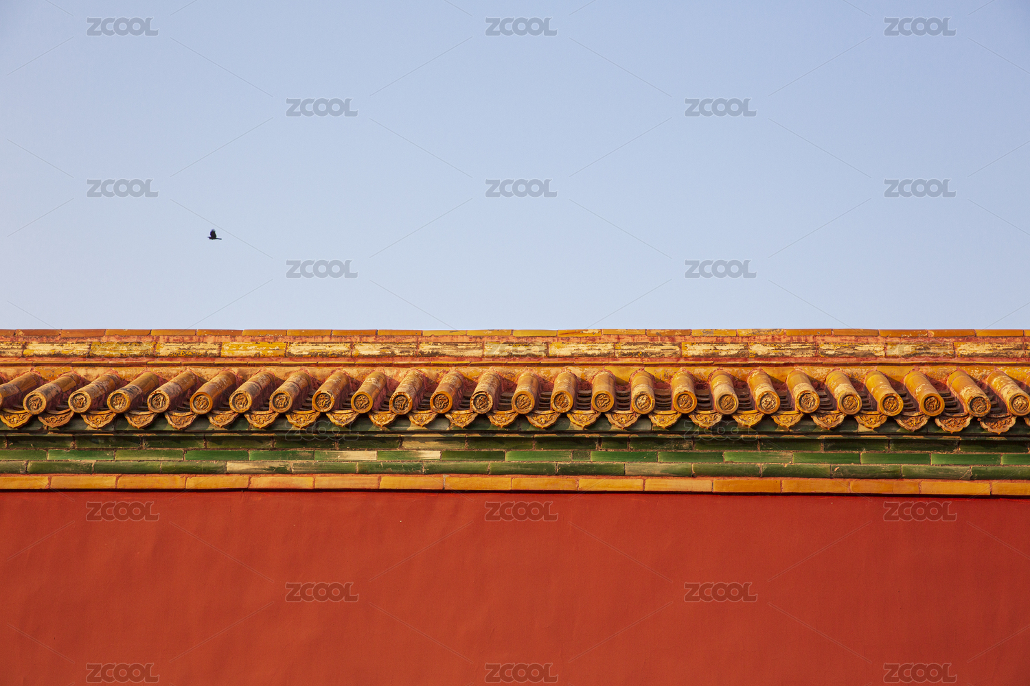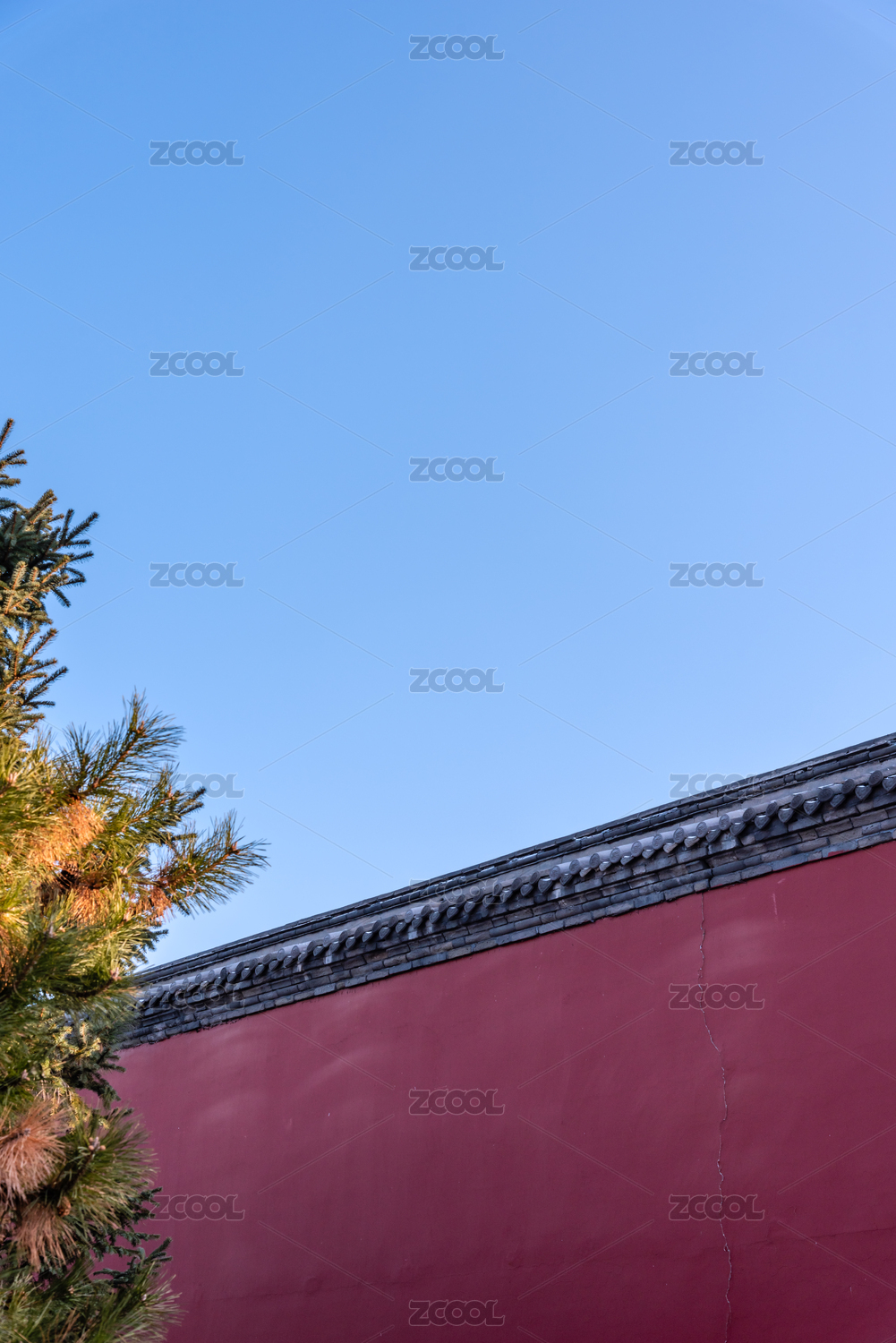 中國(guó)傳統(tǒng)建筑宮殿宮墻綠色琉璃瓦