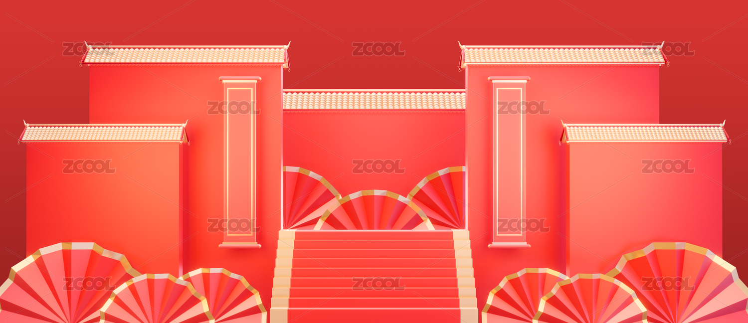 3d紅金宮墻中式新年喜慶背景壁紙插畫