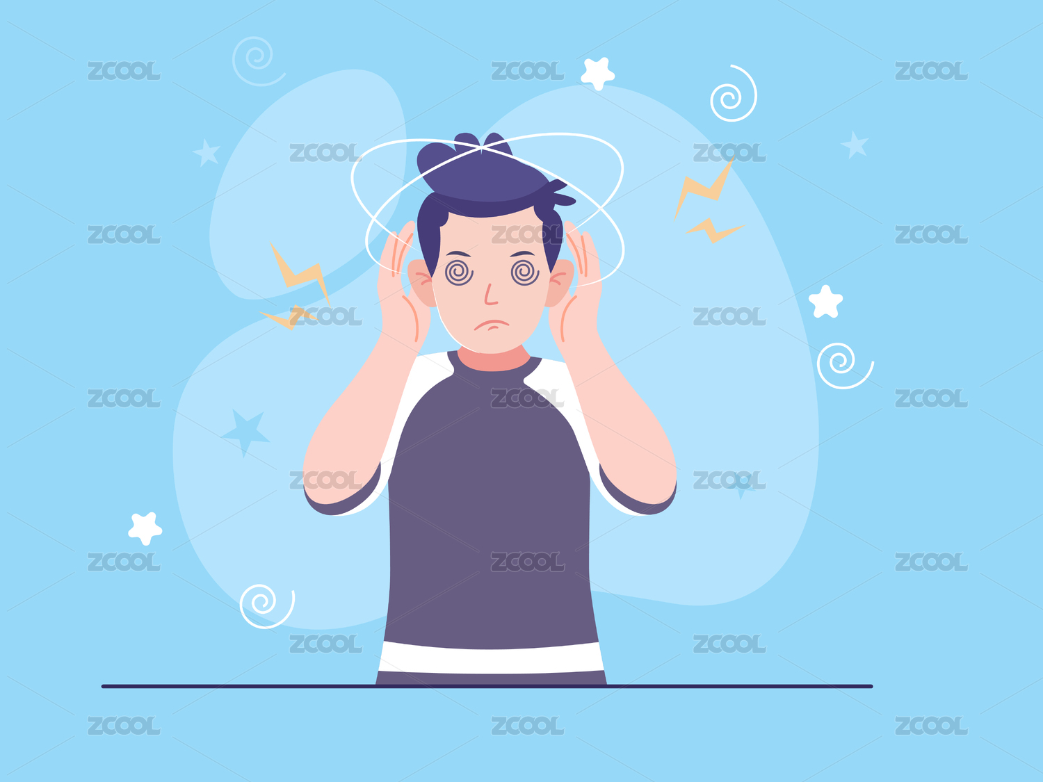 一個(gè)男生抱著頭頭暈矢量插畫(huà)