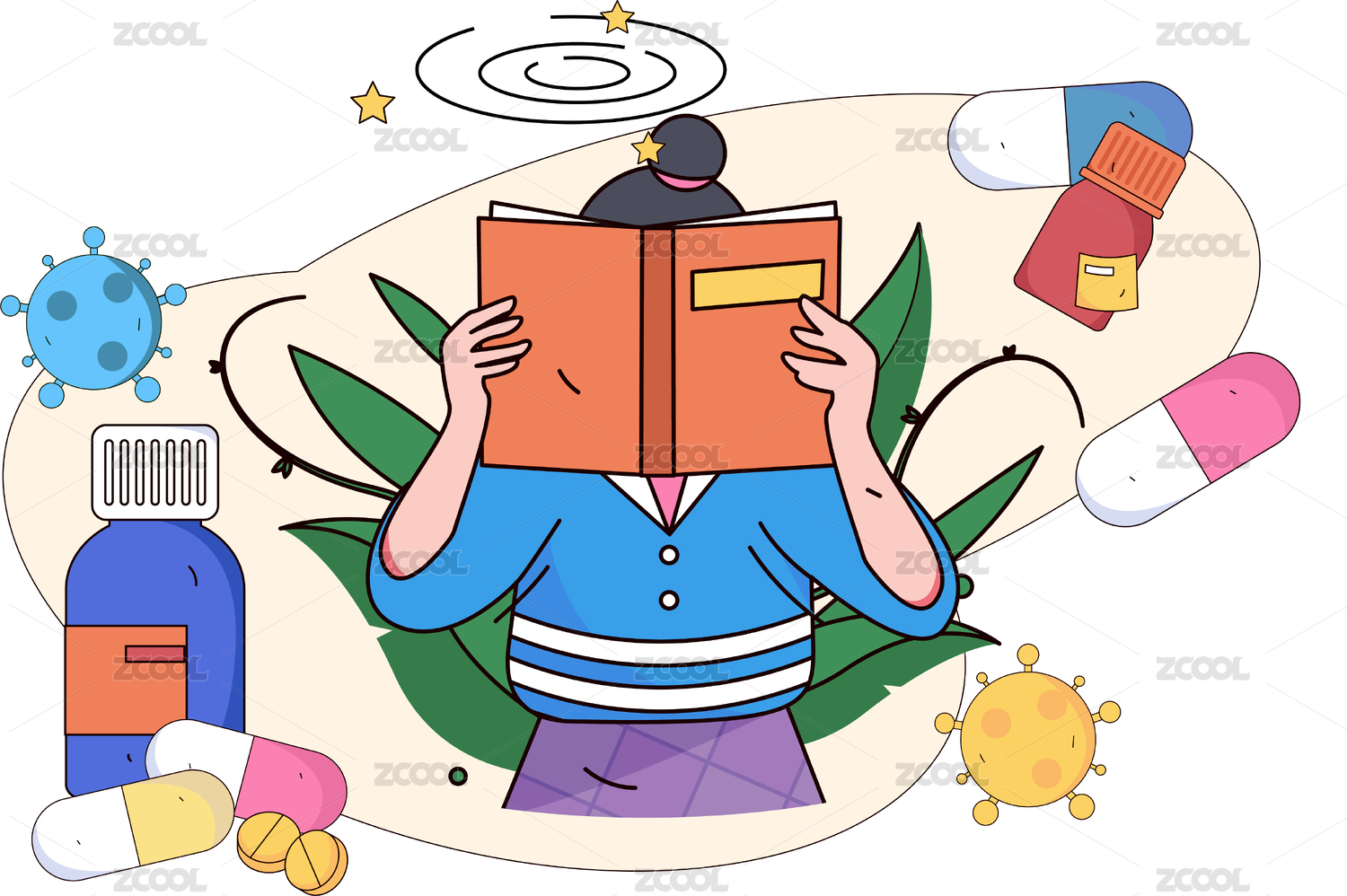 女性拿著書(shū)本眩暈選擇困難不知所措