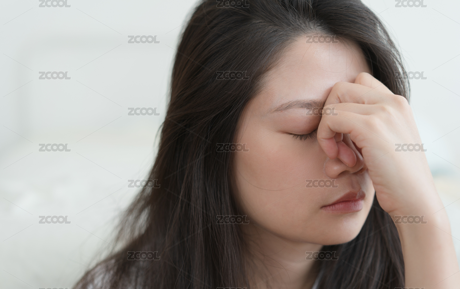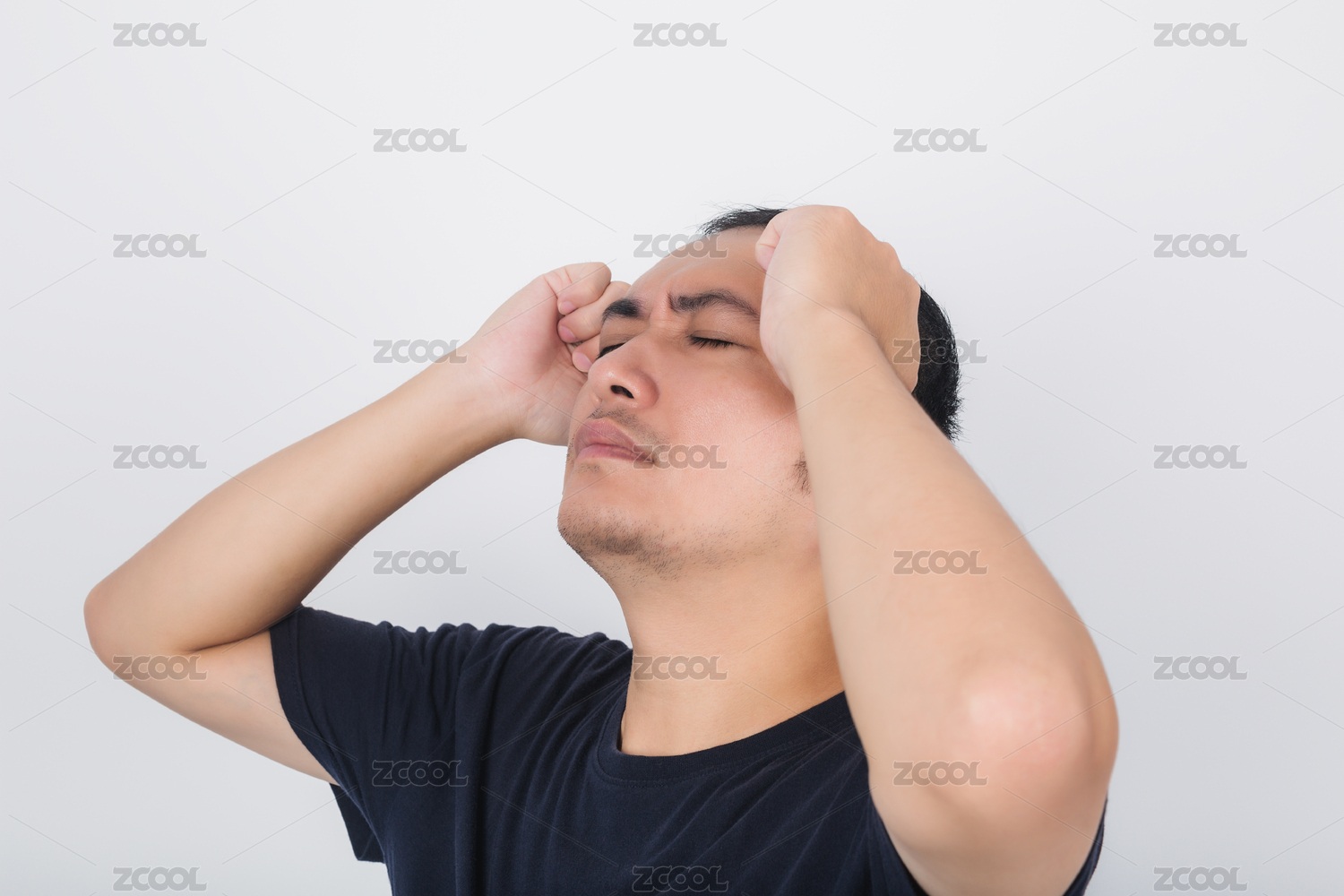 按著太陽(yáng)穴頭暈頭痛的亞洲男性