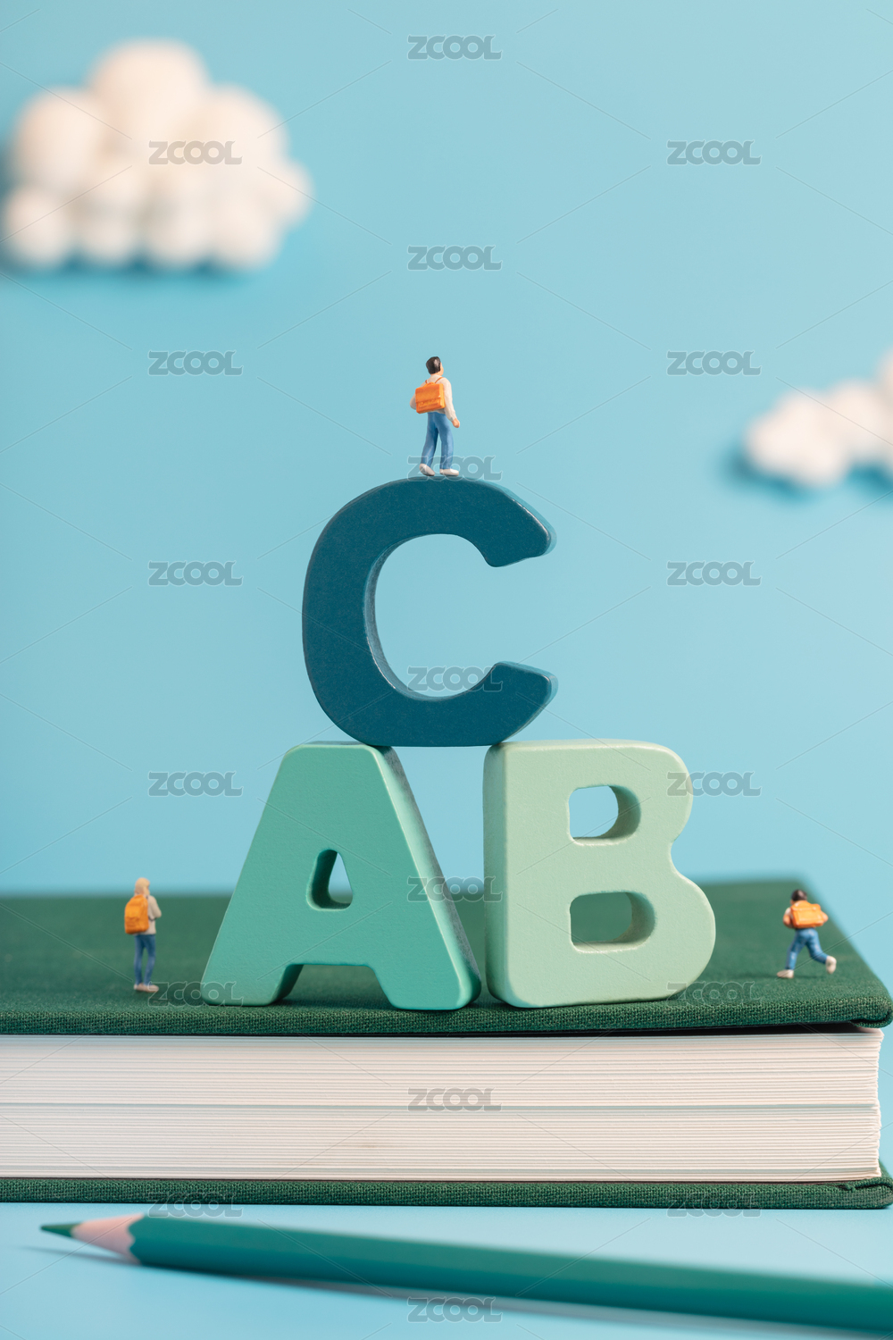 微縮創(chuàng)意書本上的字母abc和學英語的學生