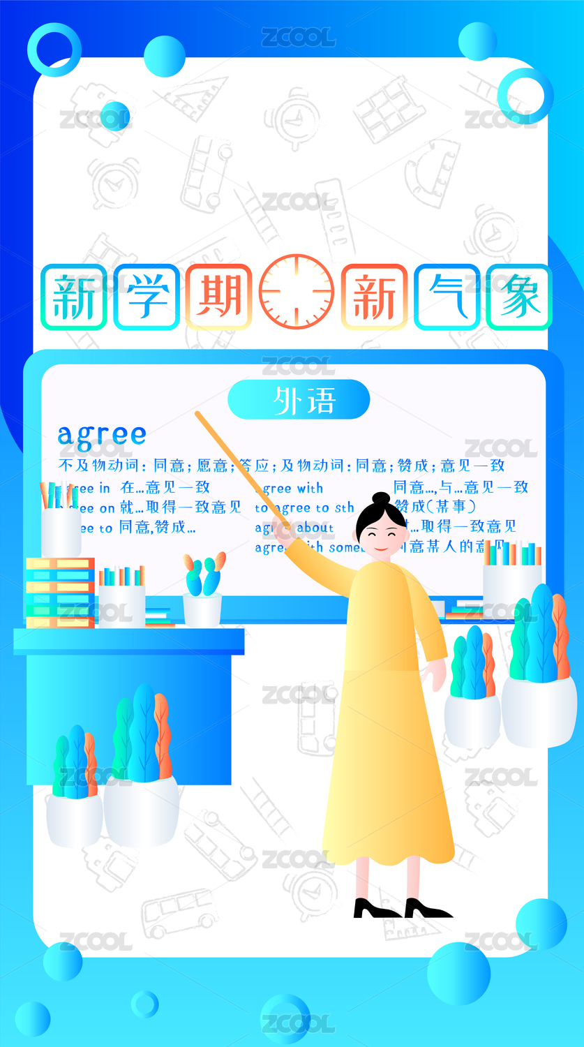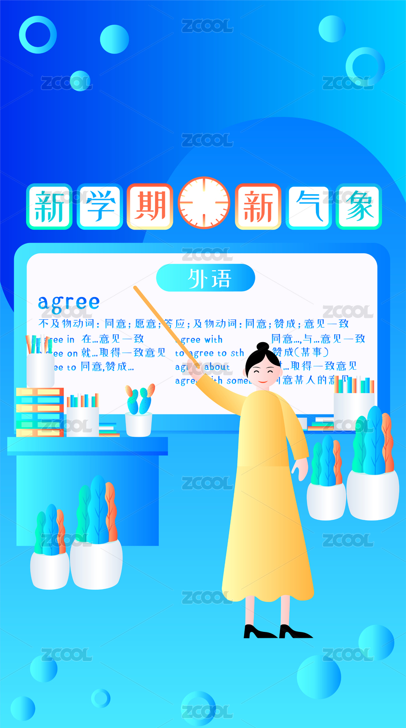 老師講英語課簡約炫彩科技風扁平插畫