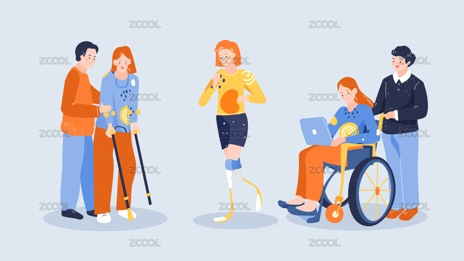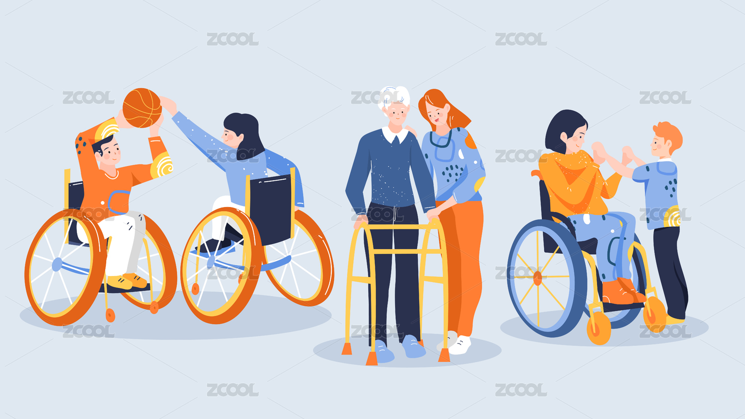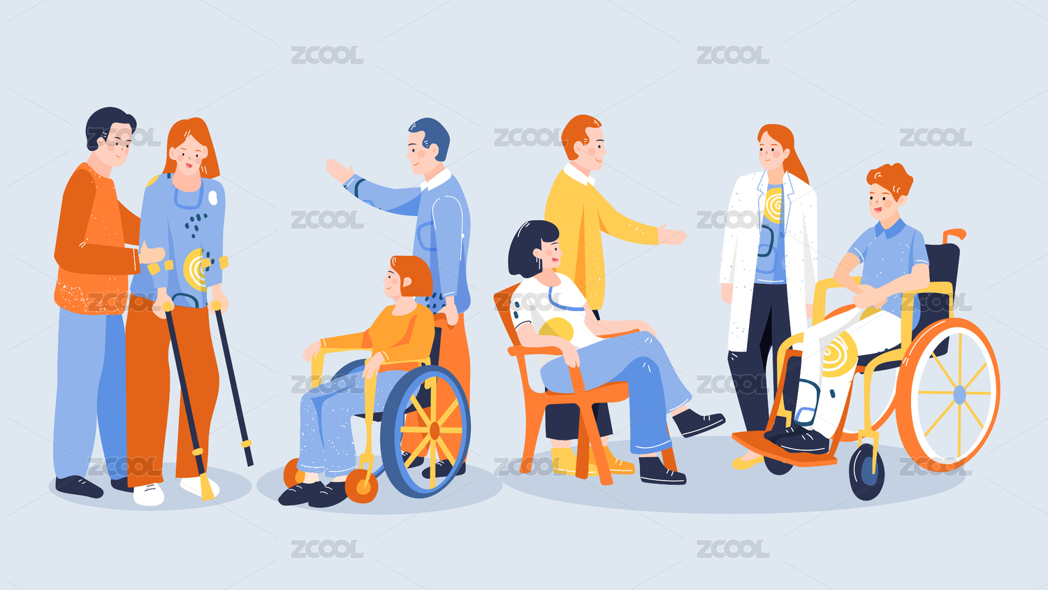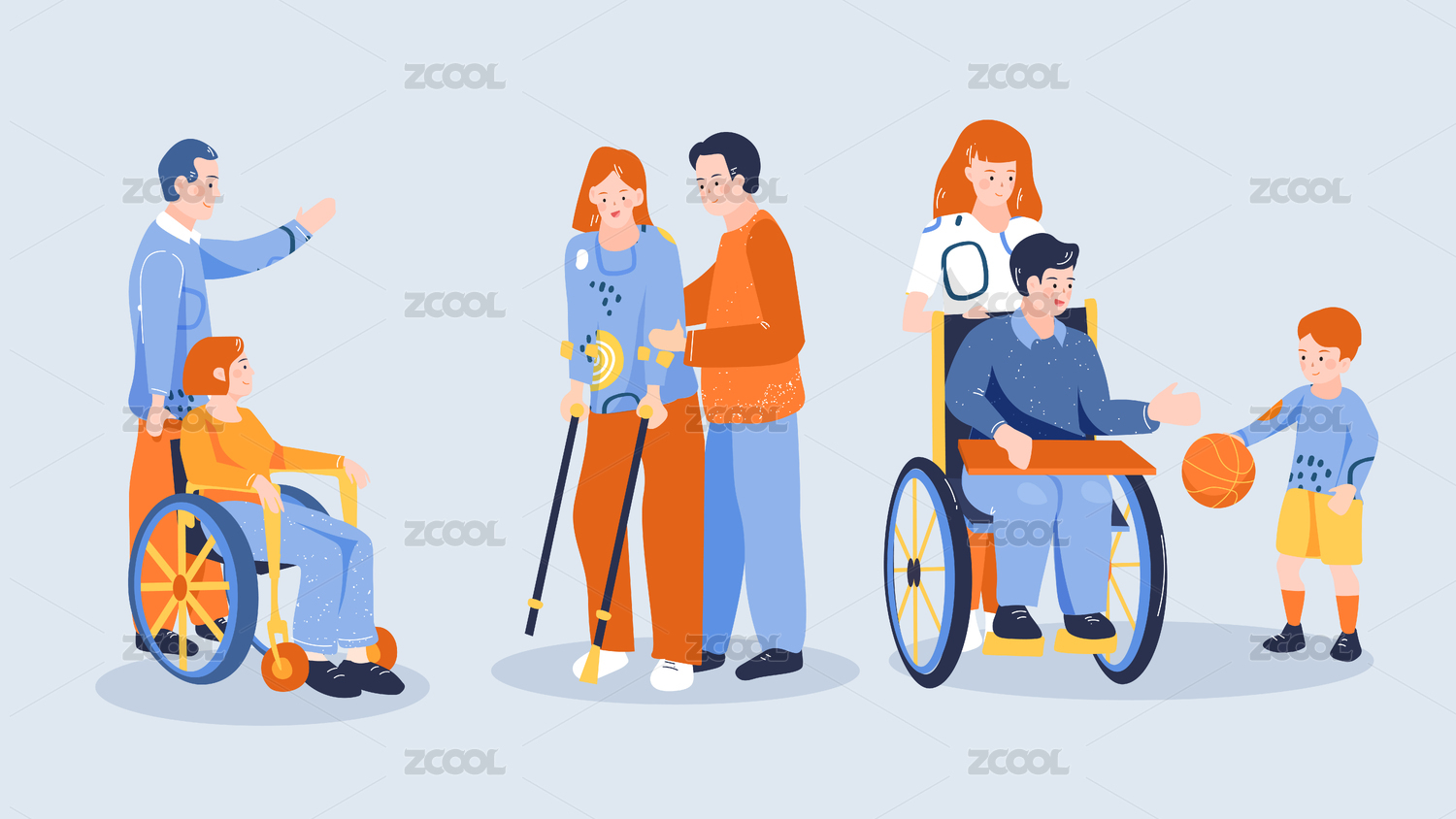 殘疾人全國助殘日醫(yī)療健康人物元素卡通扁平矢量插畫