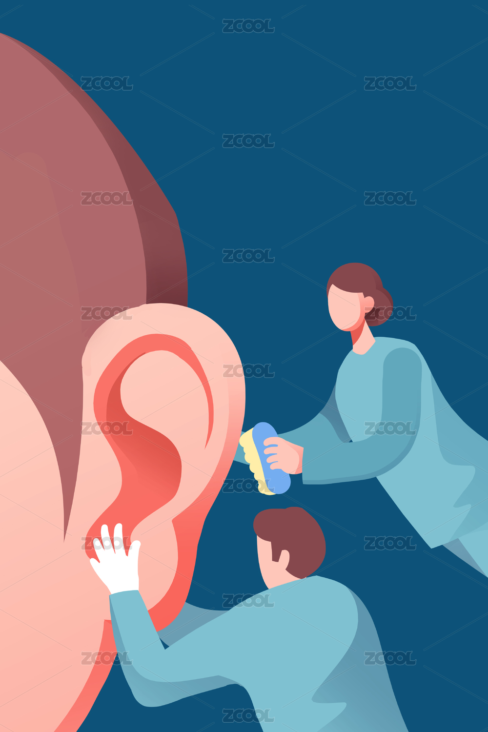 卡通手繪全國愛耳日人物清理耳朵插畫