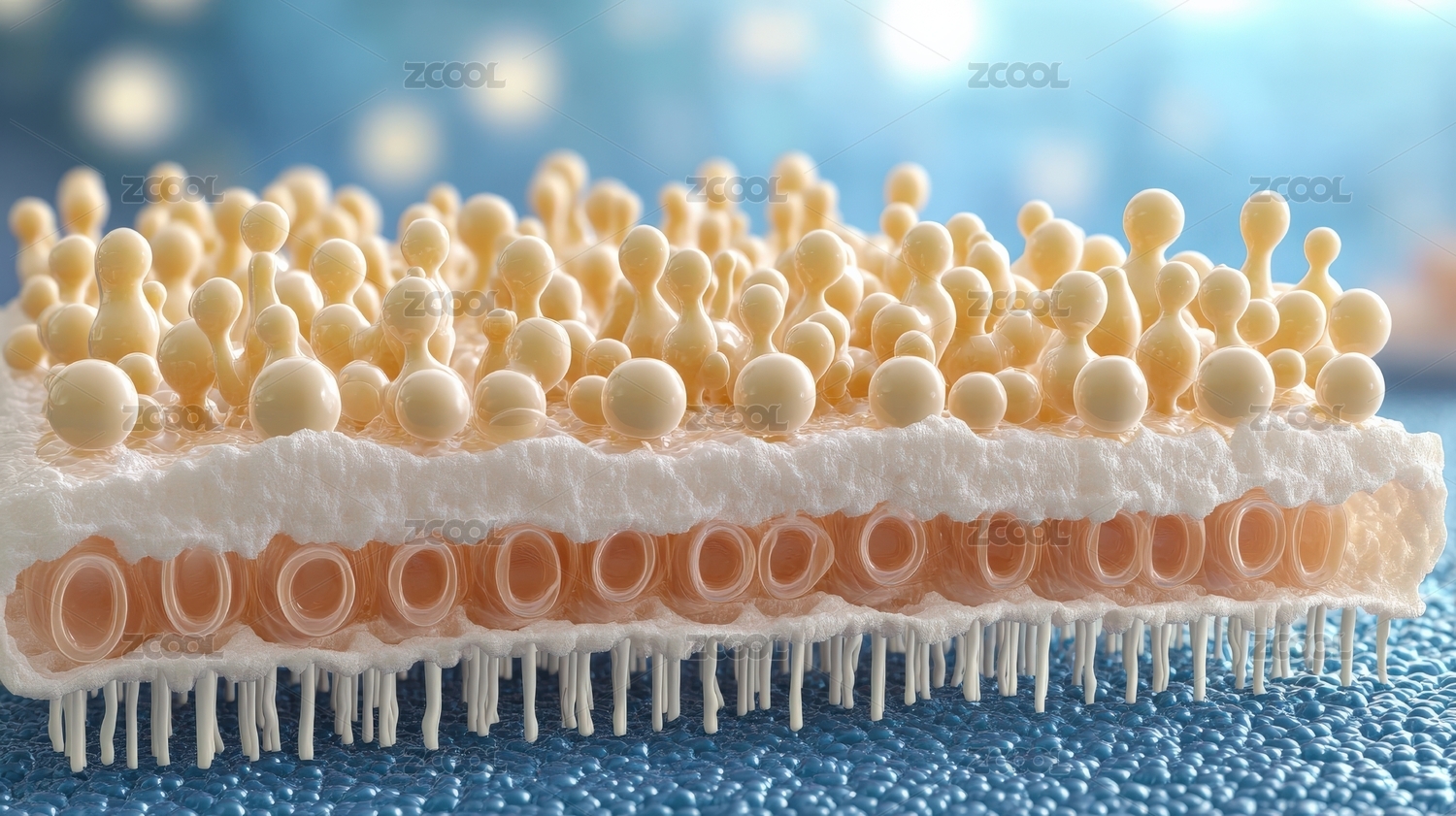 醫(yī)學科研微觀視覺下細胞膜覆蓋材料結(jié)構(gòu)示意