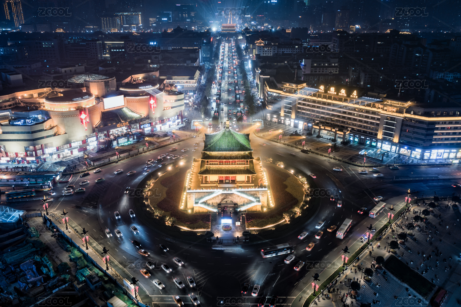 陜西省西安鐘樓中軸線夜景城市風(fēng)光