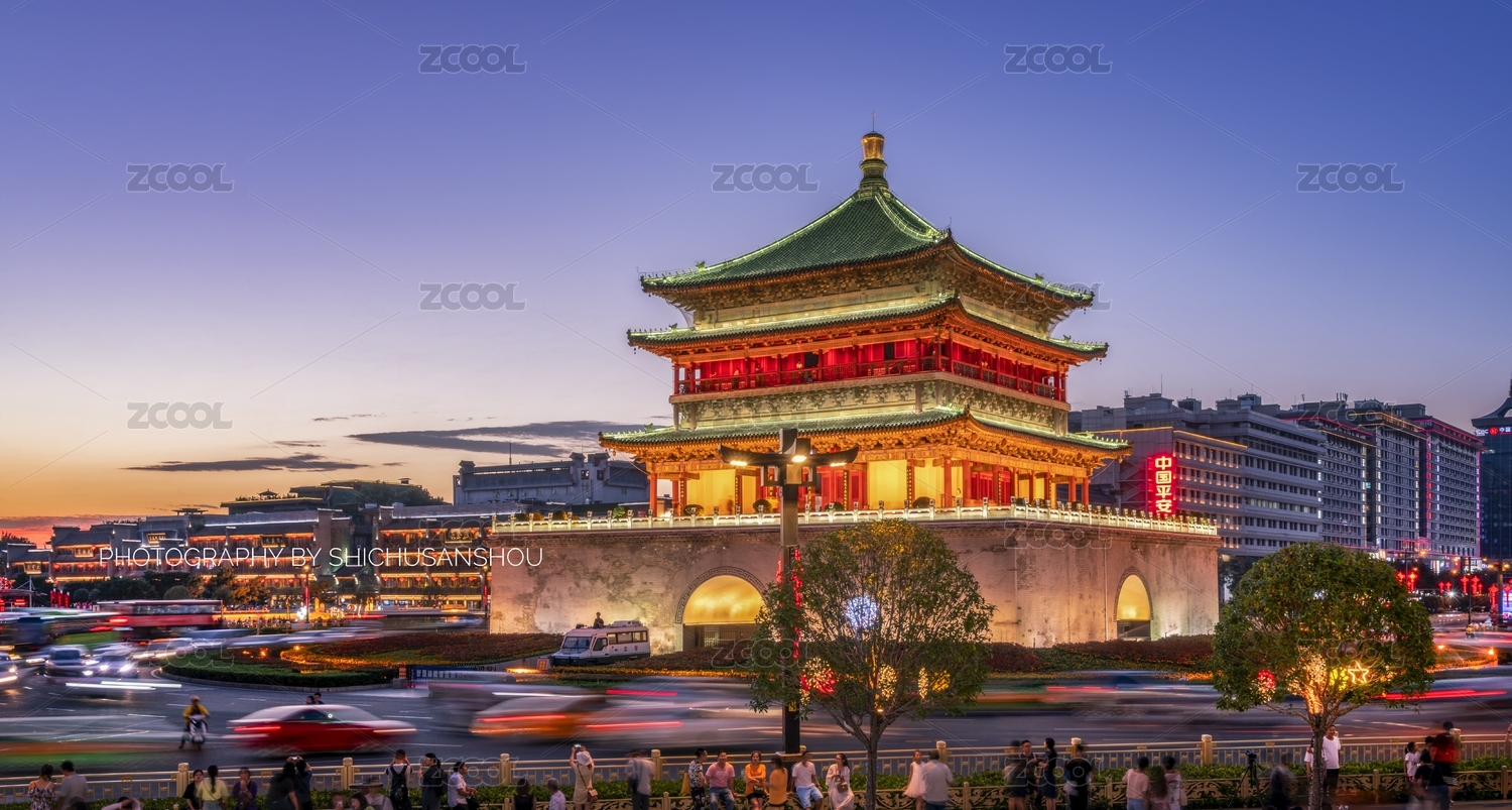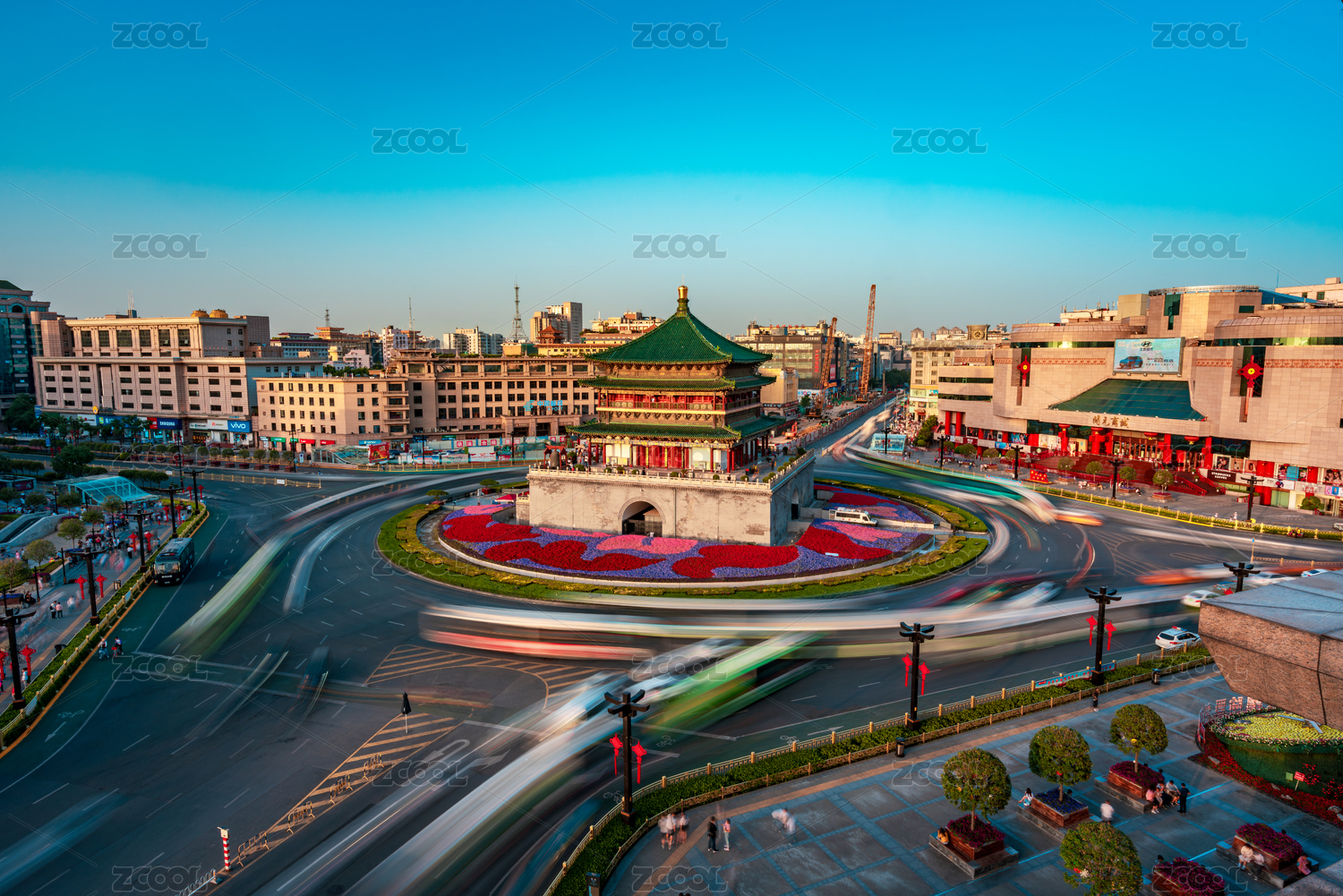中國(guó)西安城市建筑發(fā)展景觀鐘樓