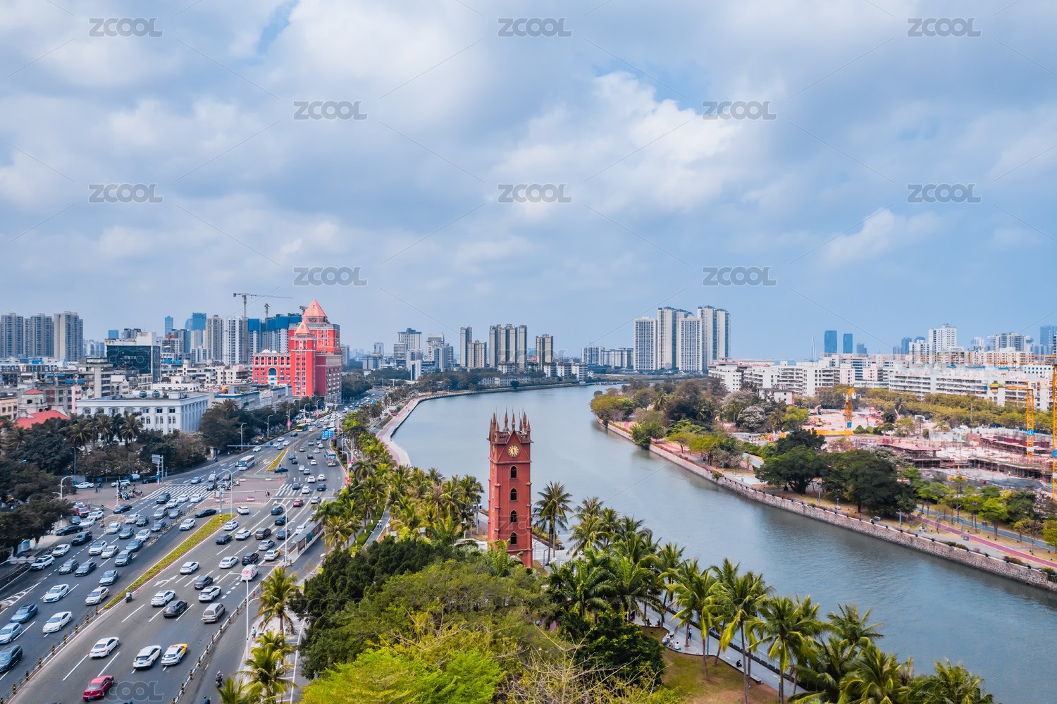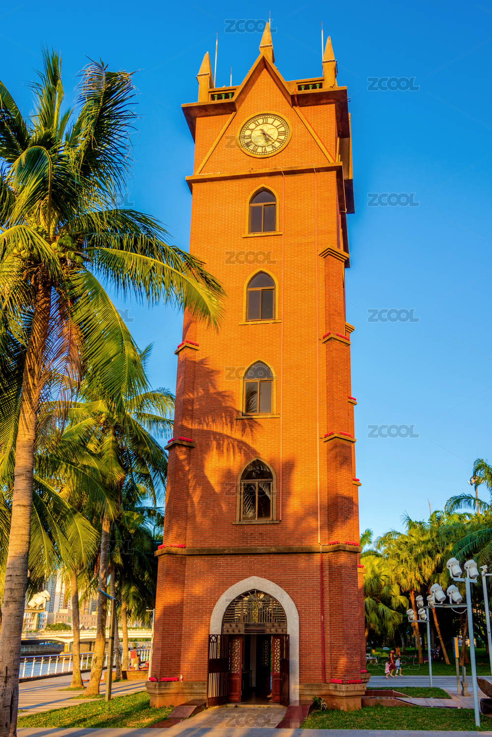 中國(guó)海南省??谑械貥?biāo)建筑海口鐘樓