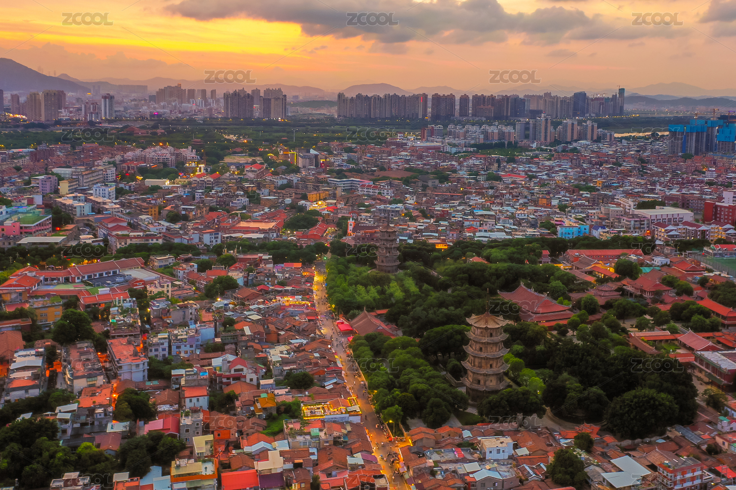 泉州古城保護(hù)區(qū)西街鐘樓東西塔開(kāi)元寺