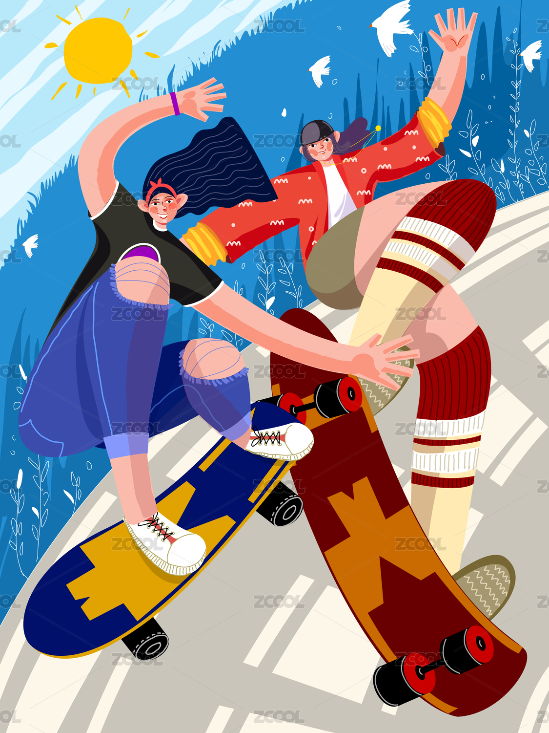 充滿活力的滑板少女的夏季運(yùn)動
