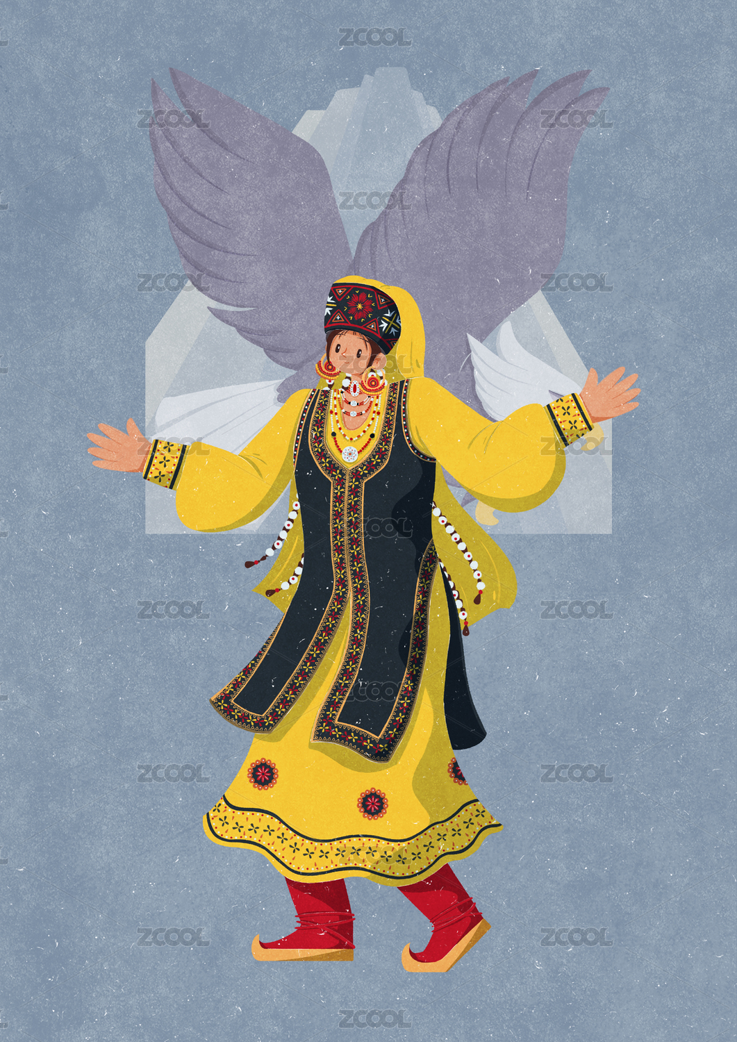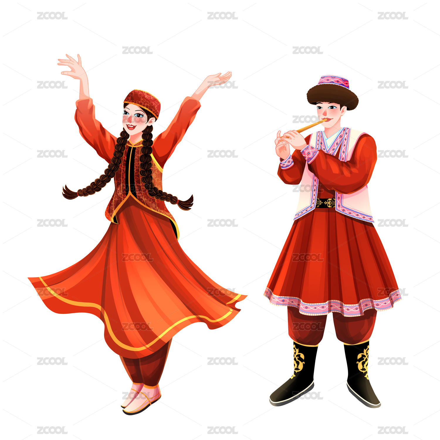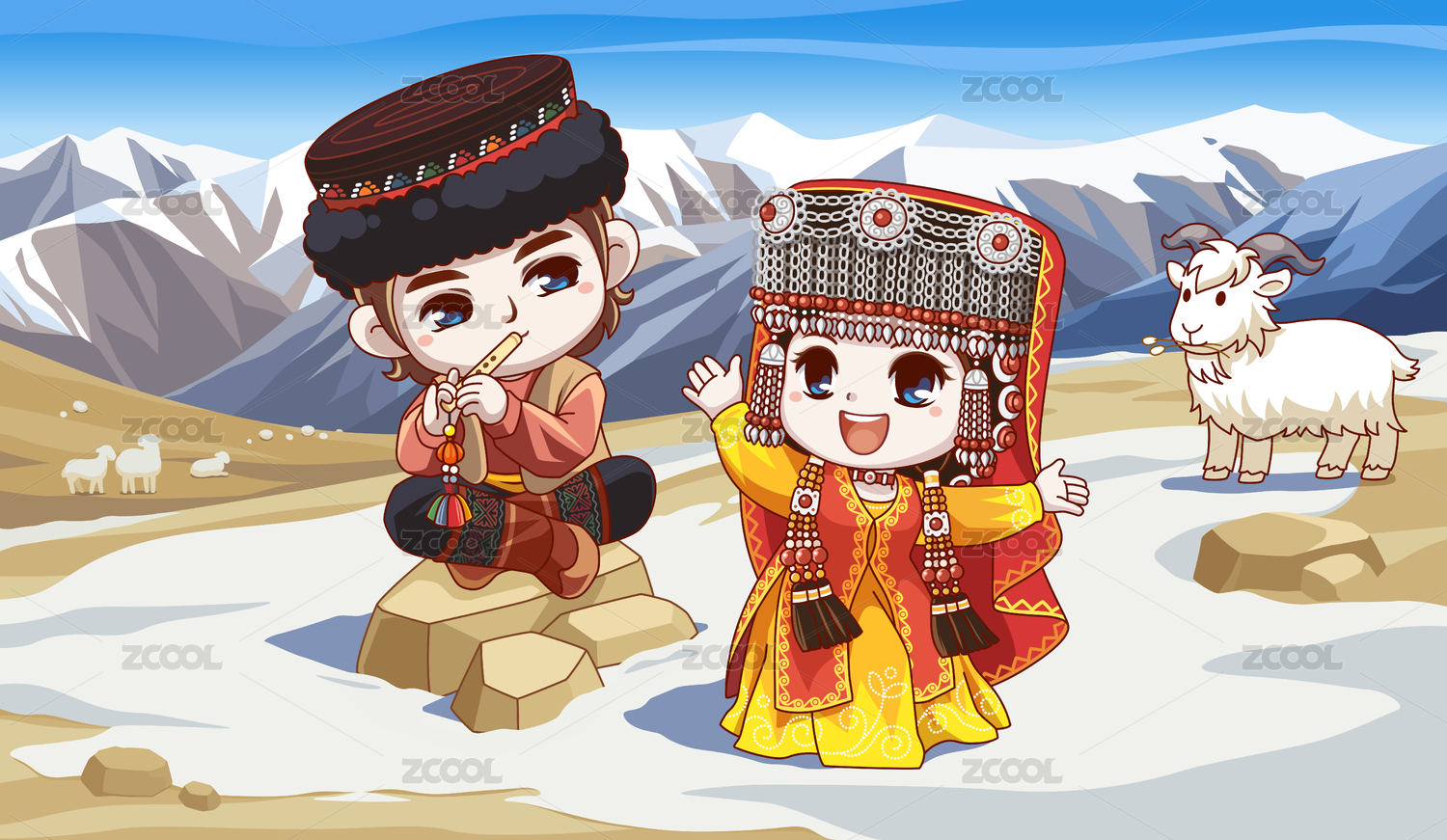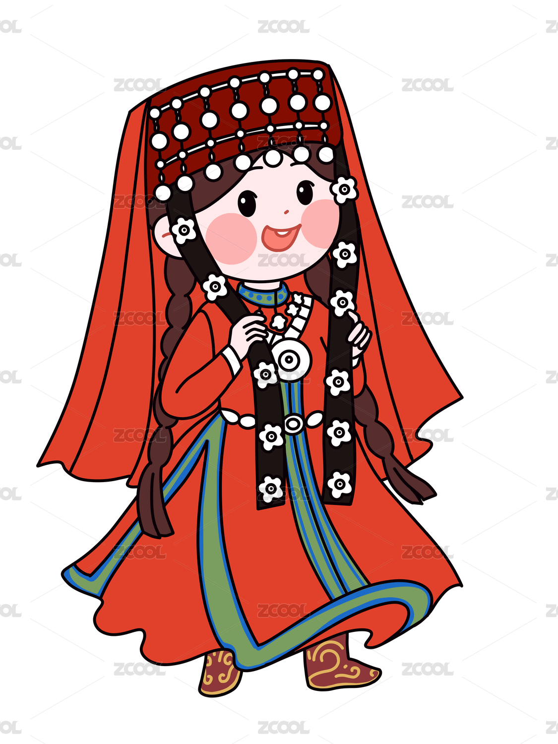 中國五十六個民族塔吉克族少女盛裝女性服飾插畫