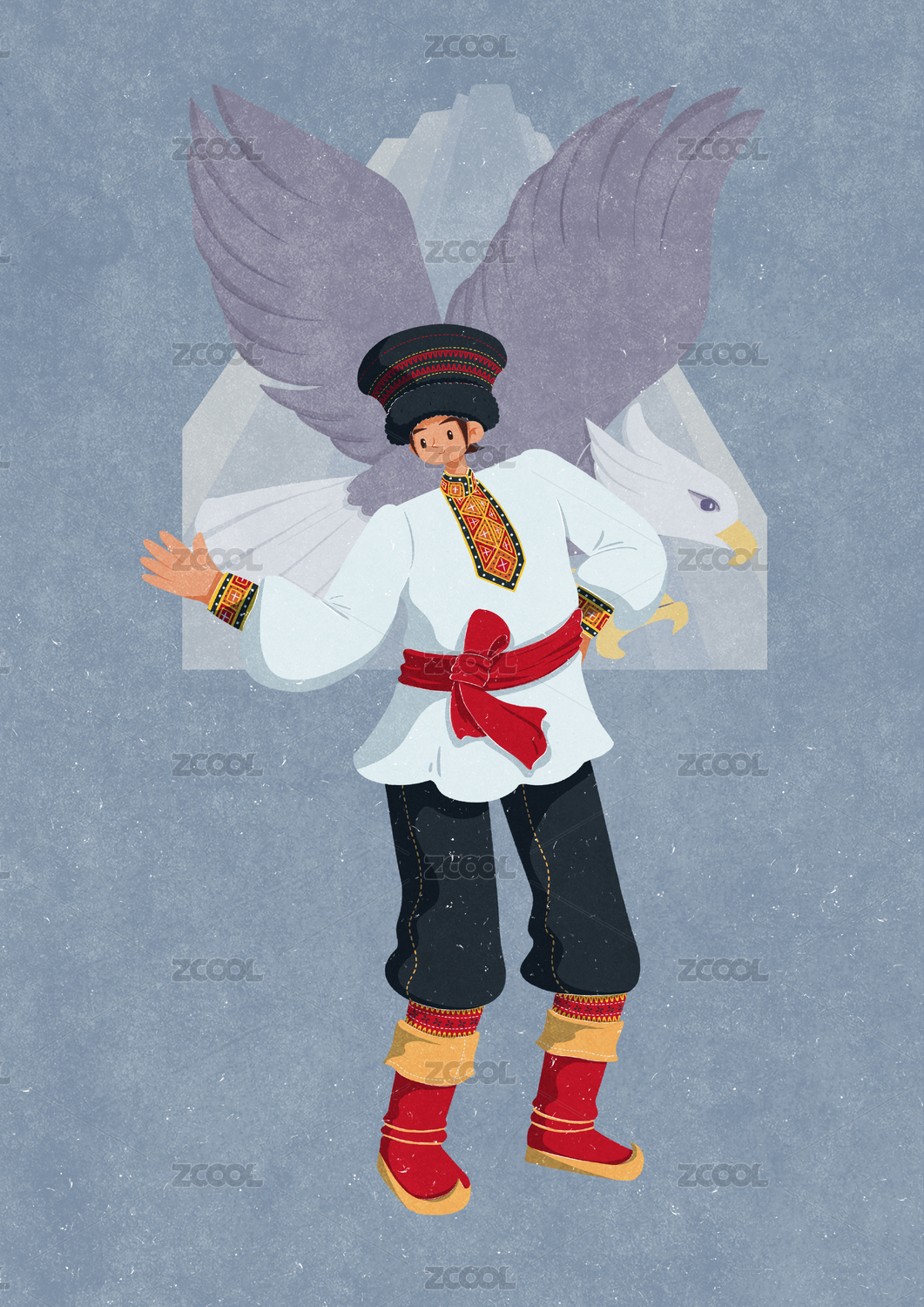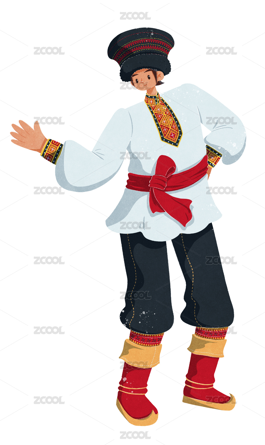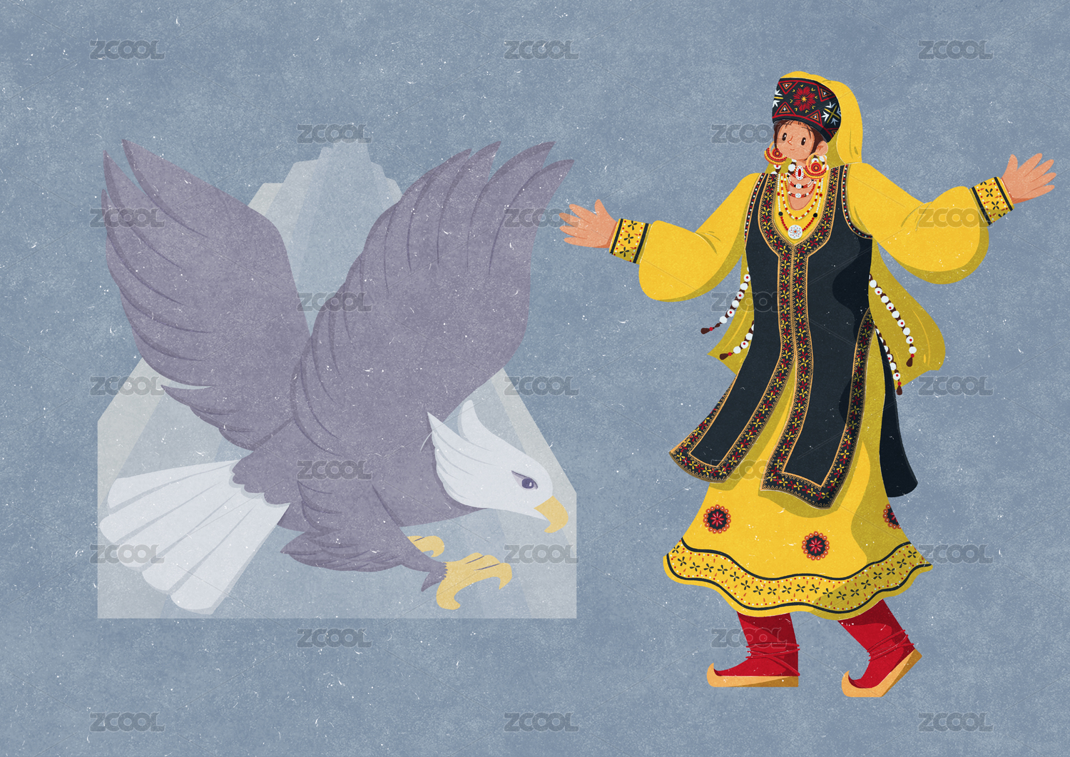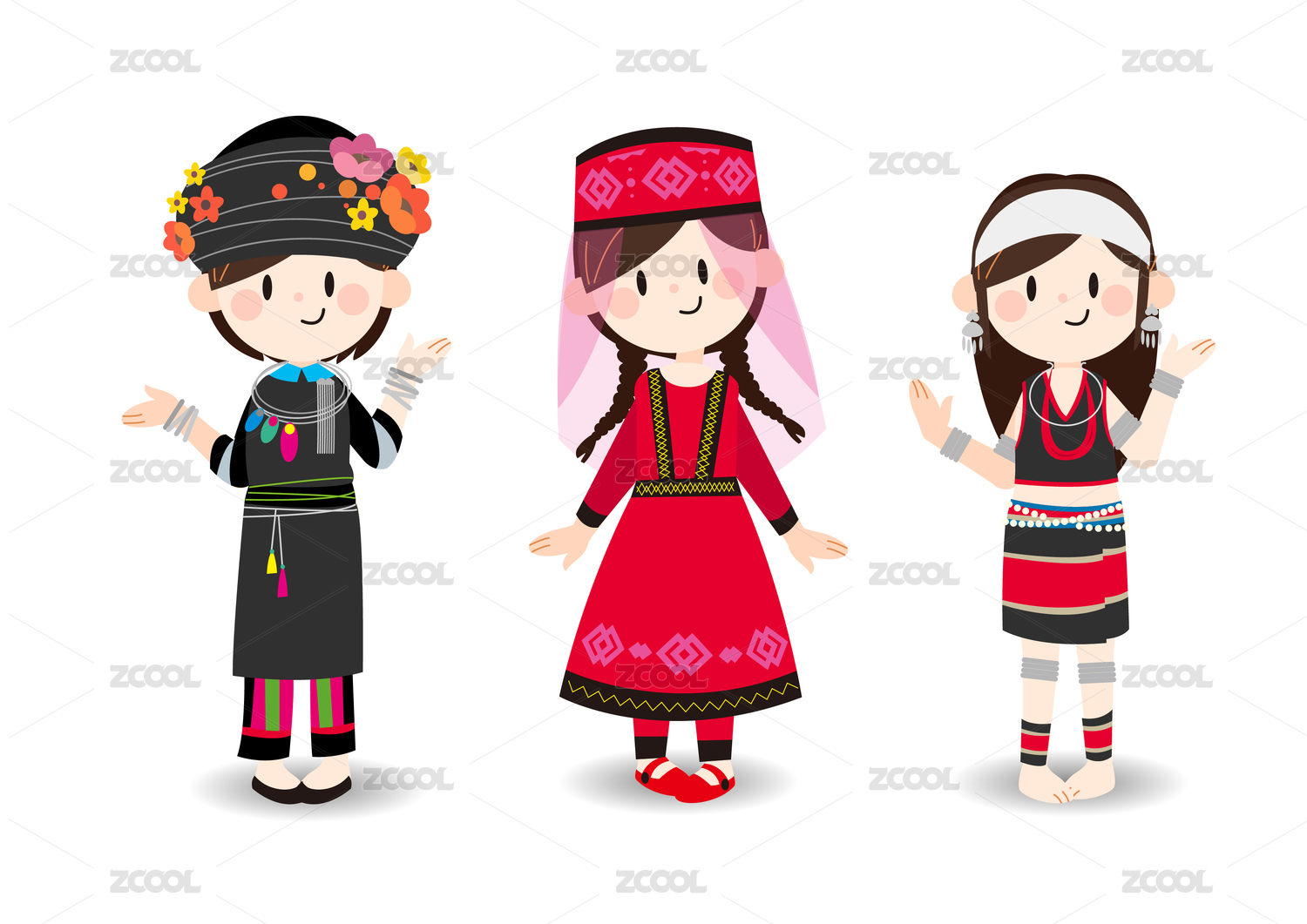 中國五十六個民族塔吉克族少女盛裝女性服飾插畫