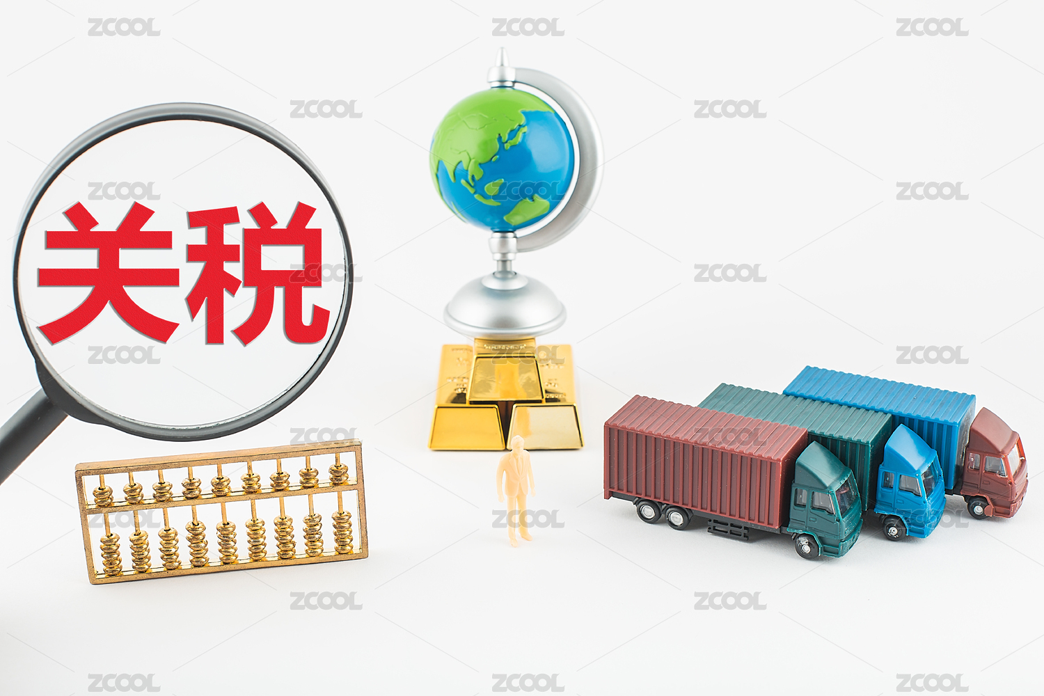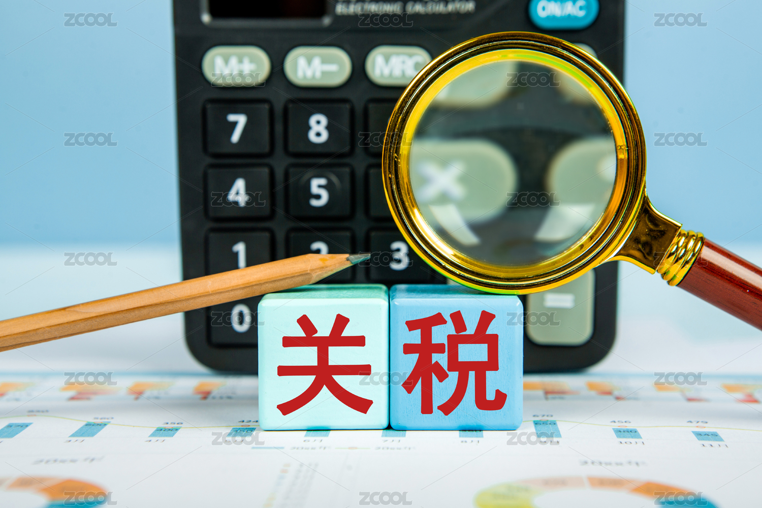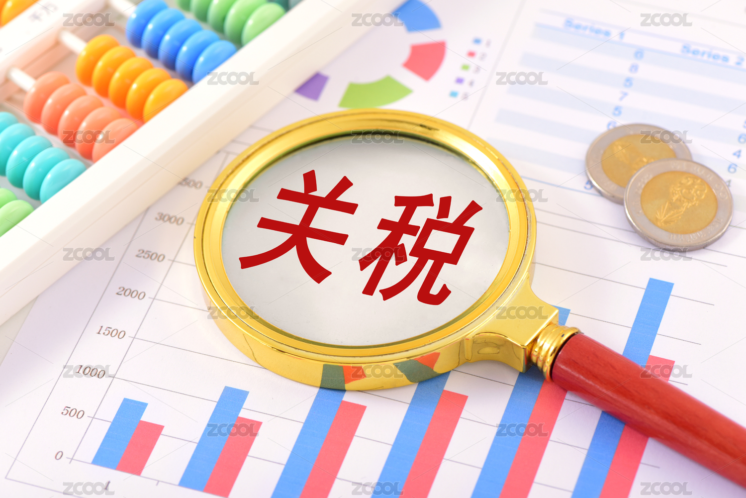 金融辦公用品上的放大鏡印著文字關(guān)稅