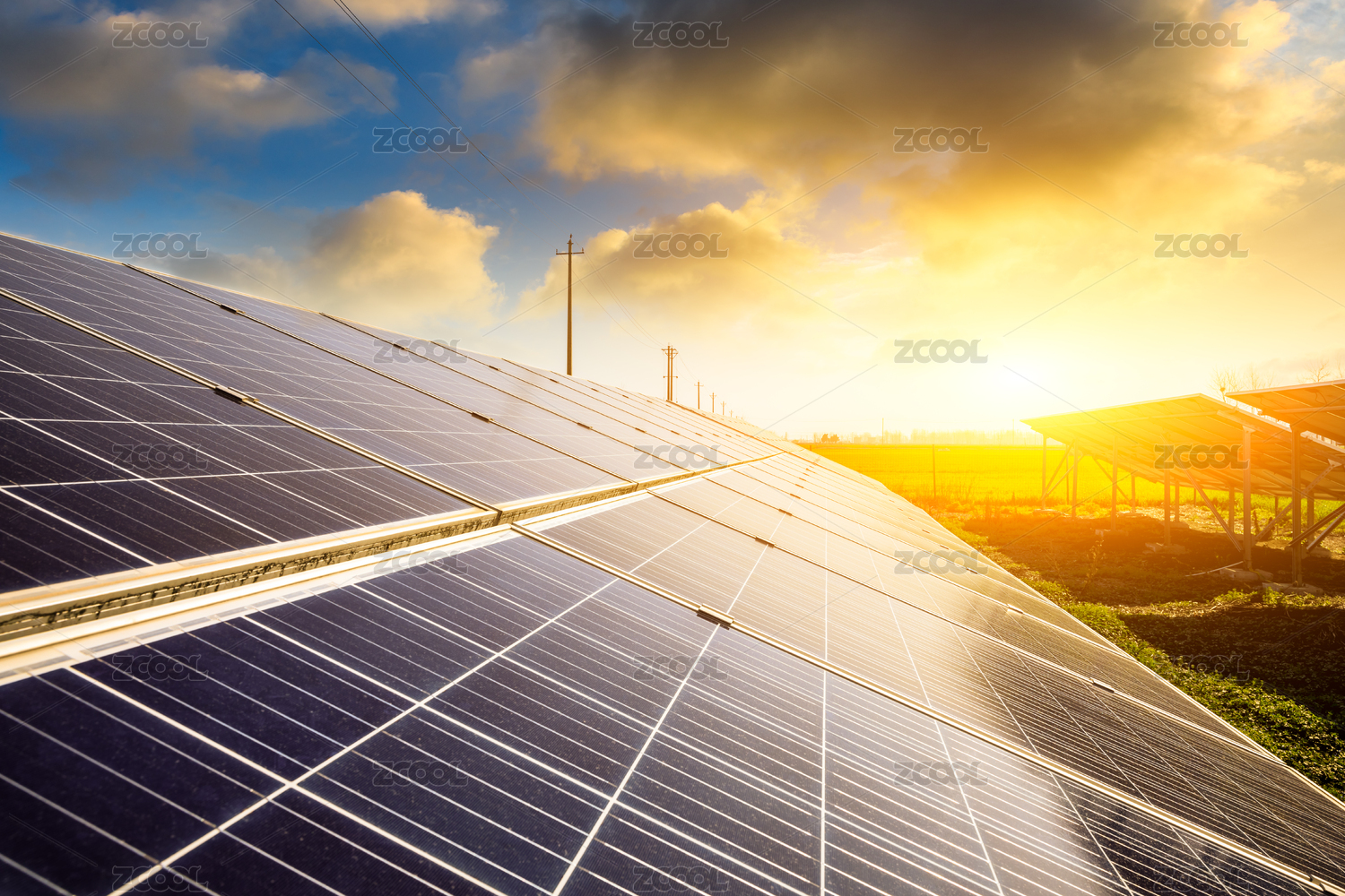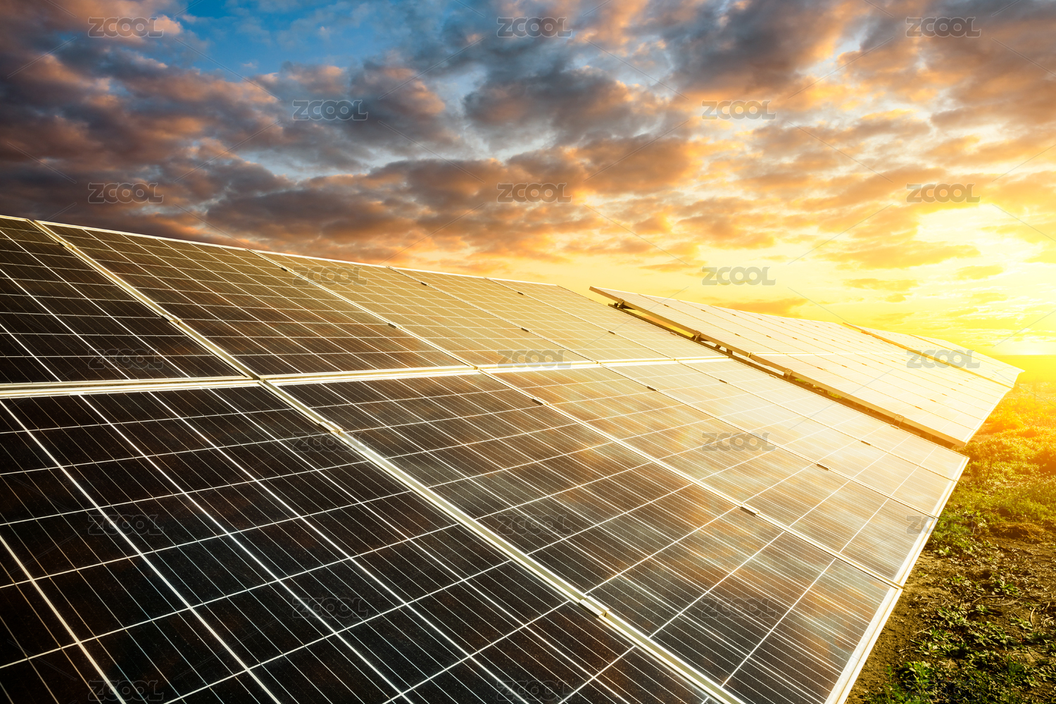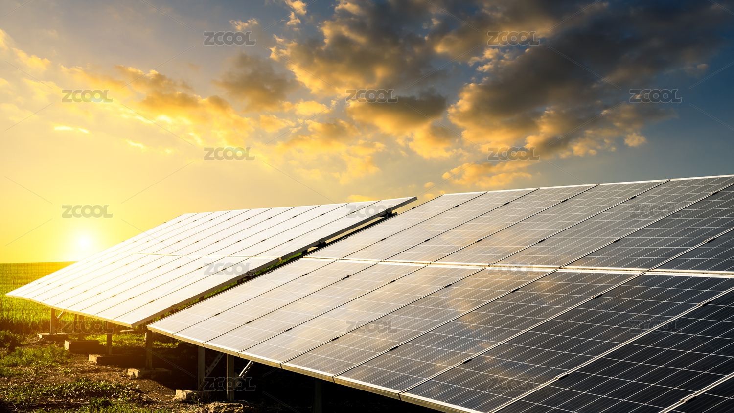 亞洲夏季日落時(shí)太陽(yáng)能電池板和環(huán)境自然風(fēng)光