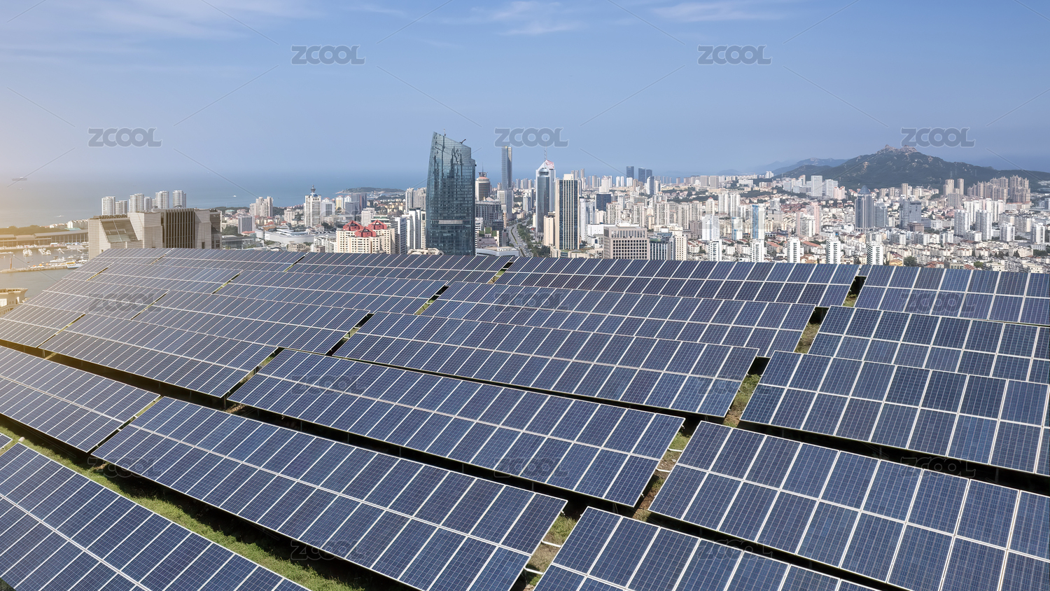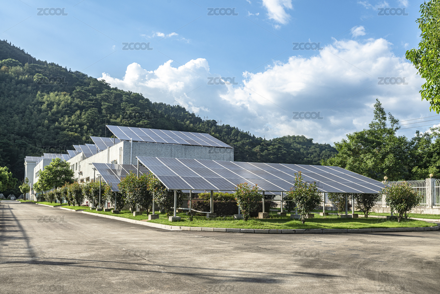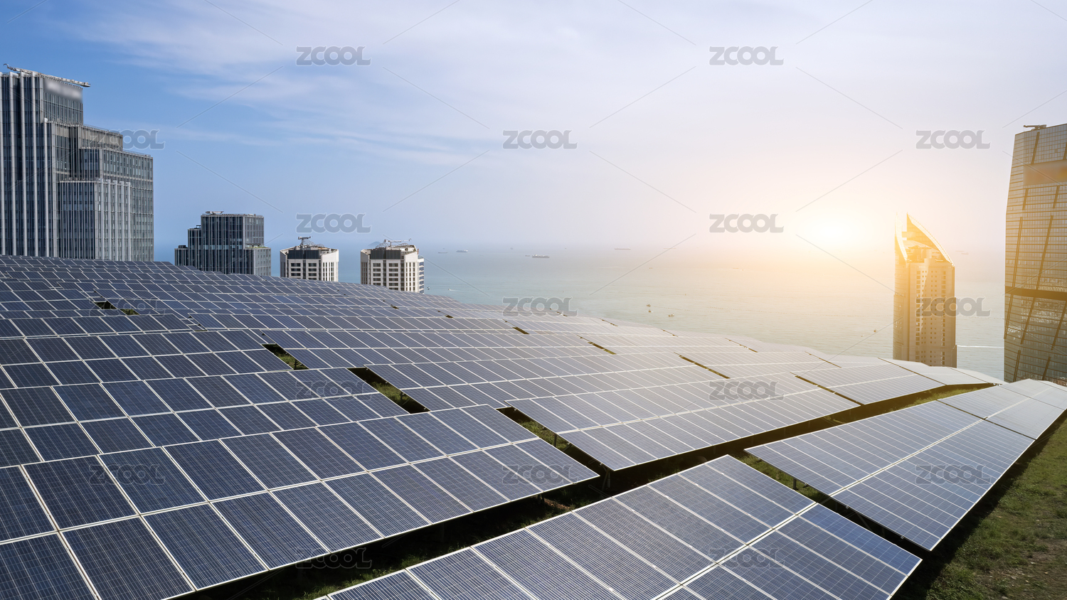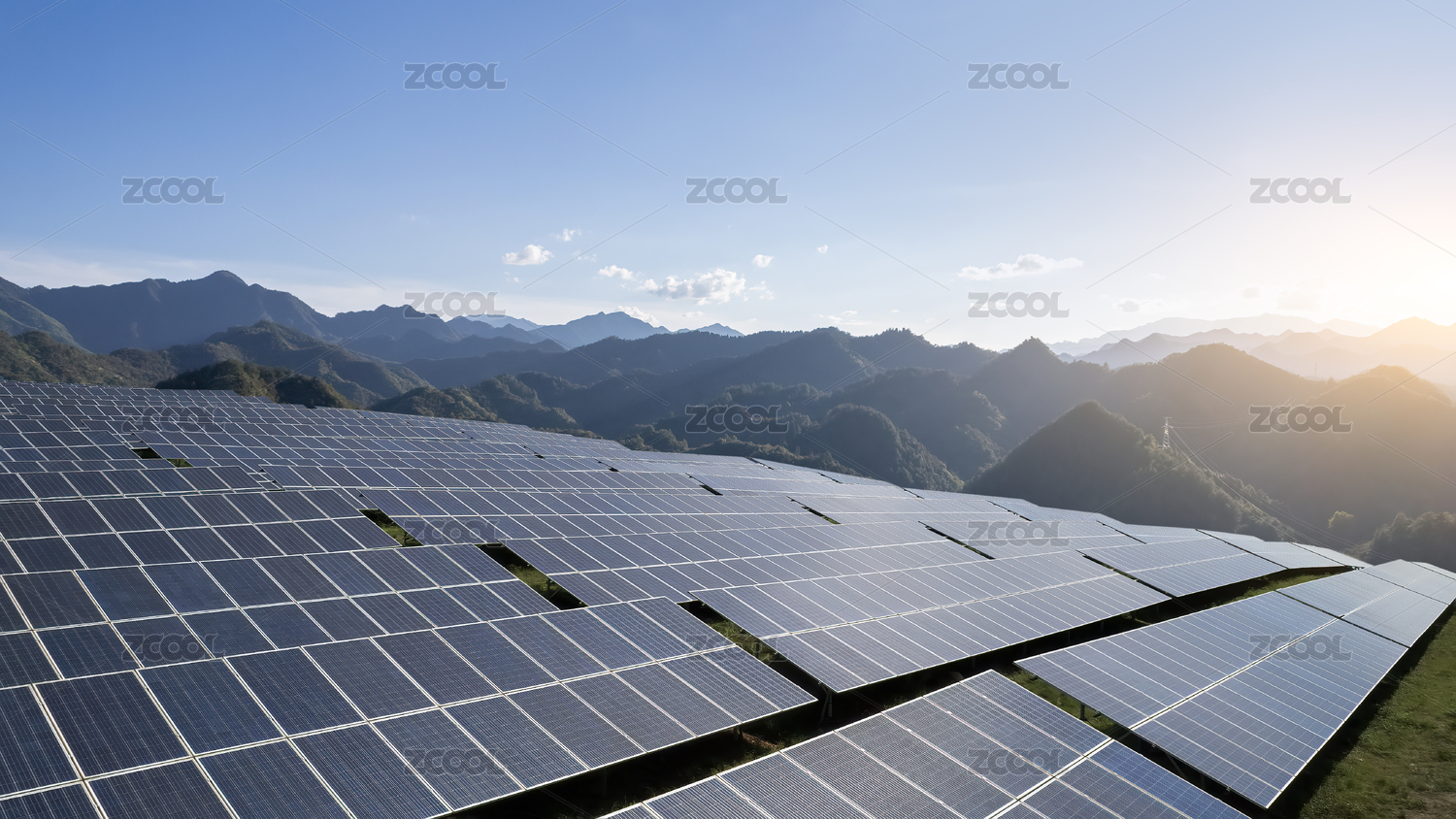 亞洲夏季日落時(shí)太陽(yáng)能電池板和環(huán)境自然風(fēng)光