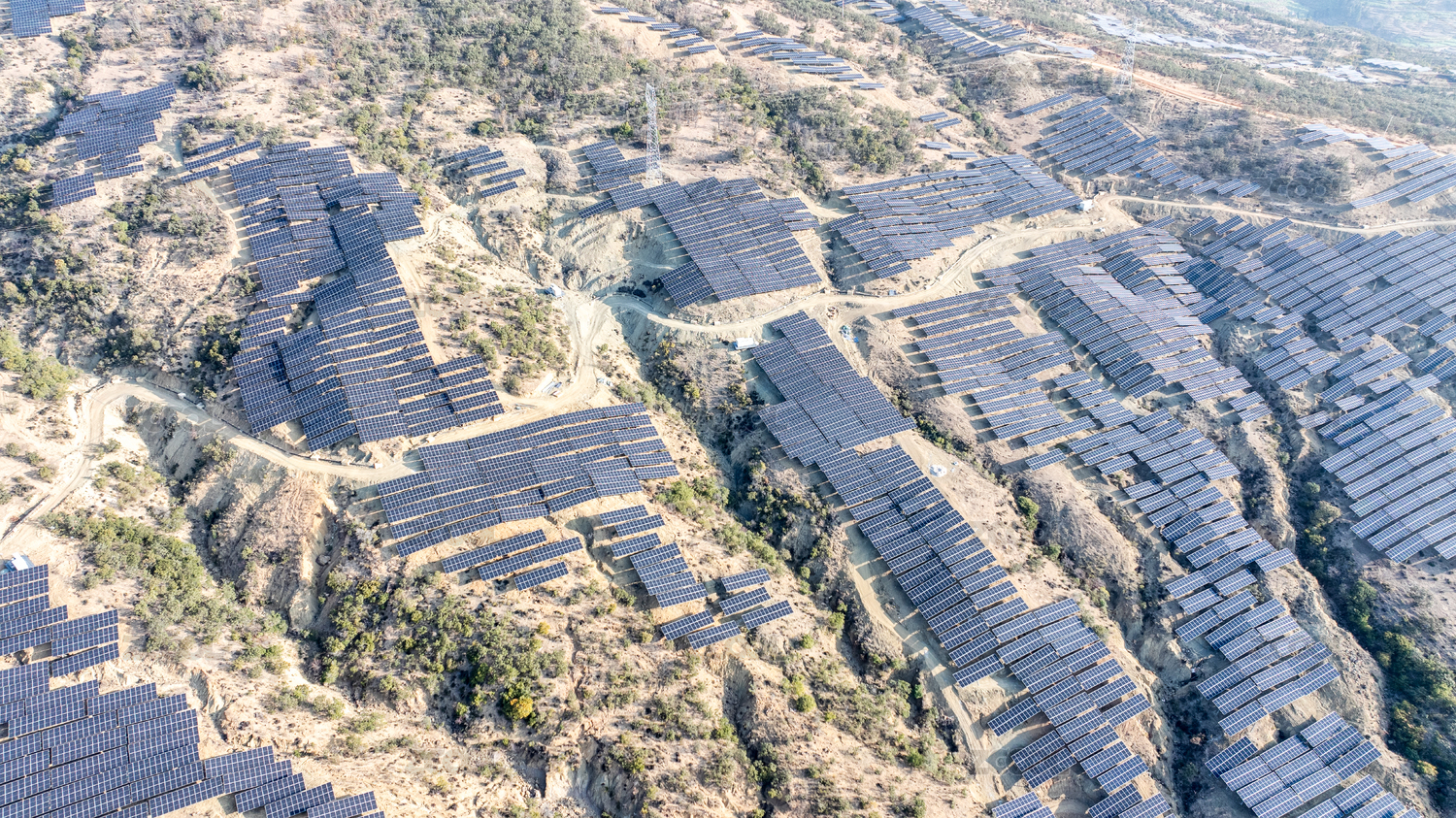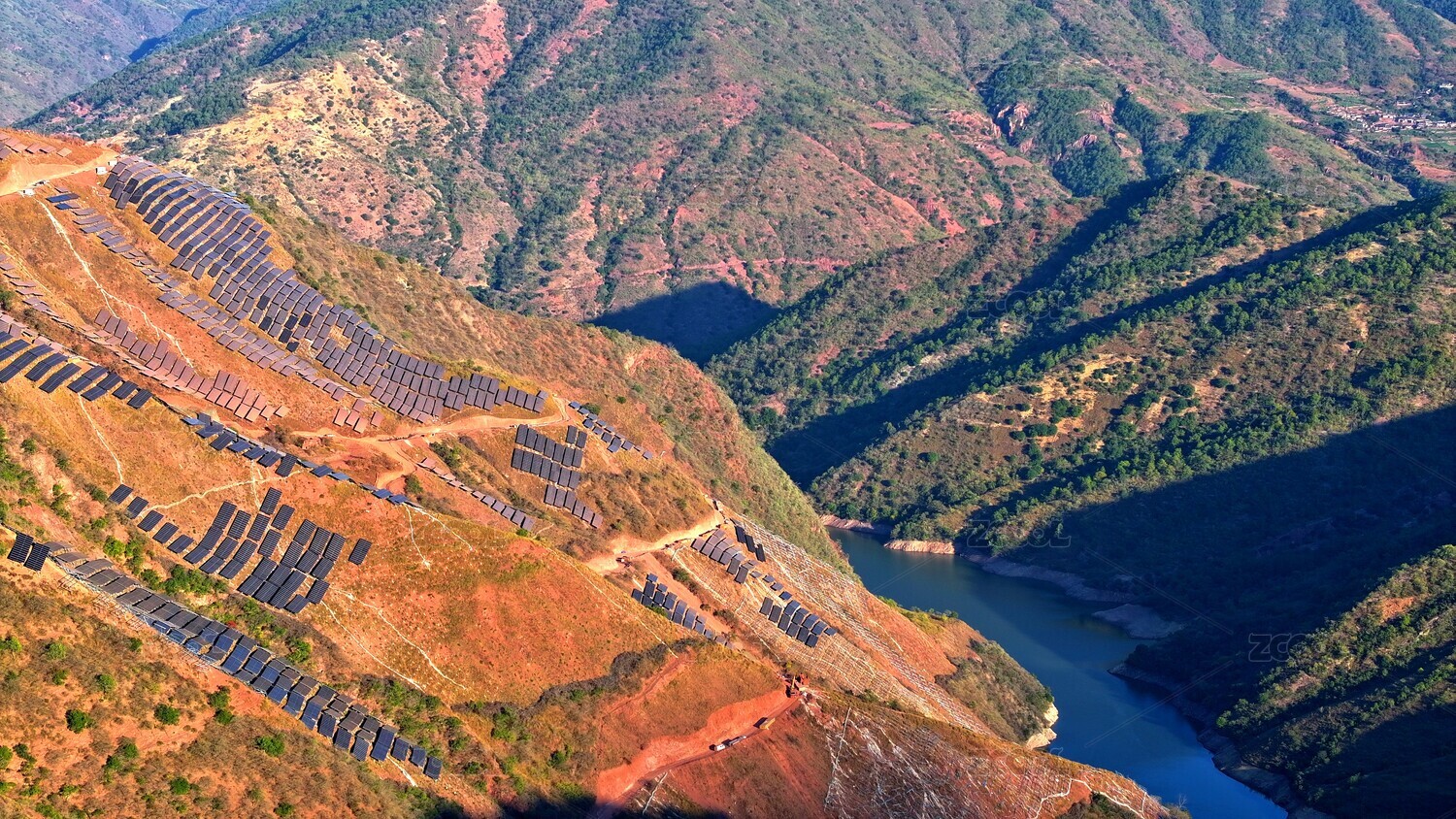 云南麗江永勝縣山坡上的大量太陽能光伏板