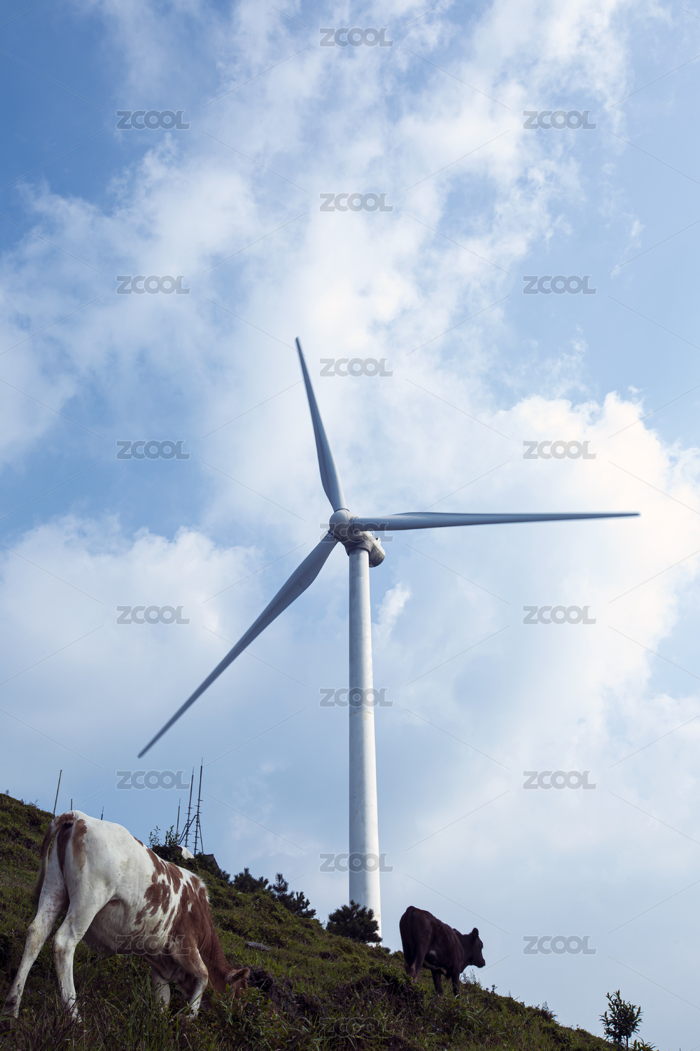 藍(lán)天白云下的風(fēng)力發(fā)電機(jī)組設(shè)備自然風(fēng)光