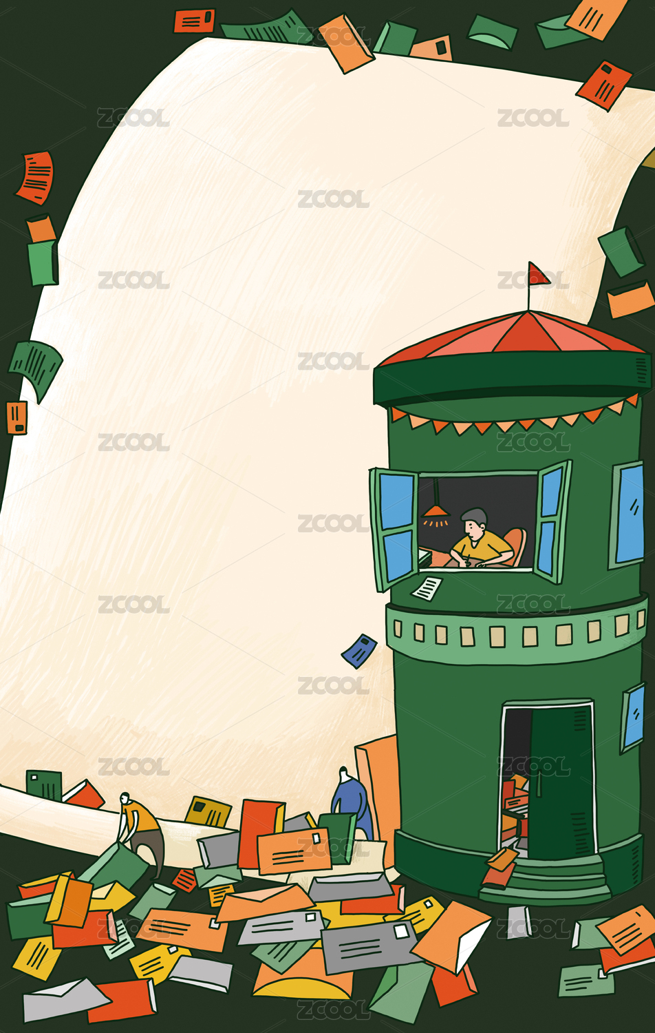 粉綠扁平風(fēng)郵政日郵筒女孩信鴿花草元素