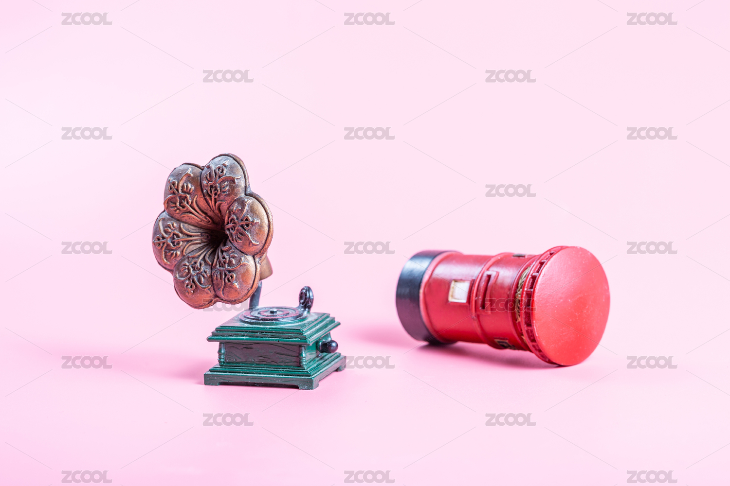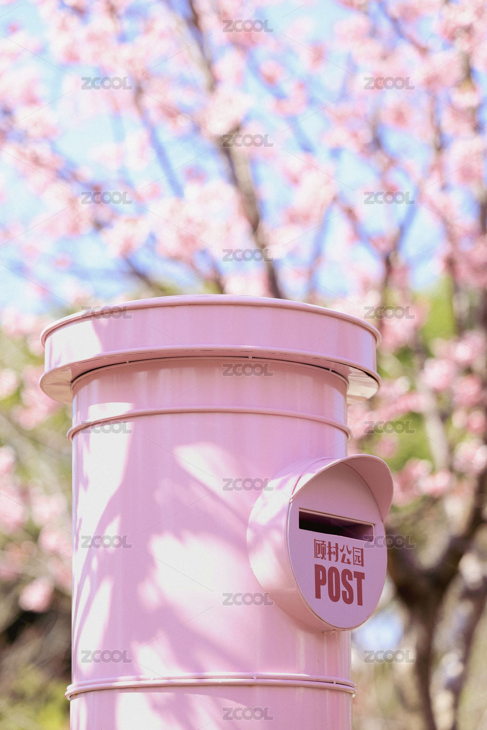 粉色背景上的英倫風(fēng)格紅色郵筒