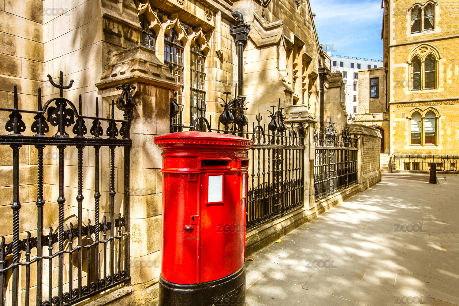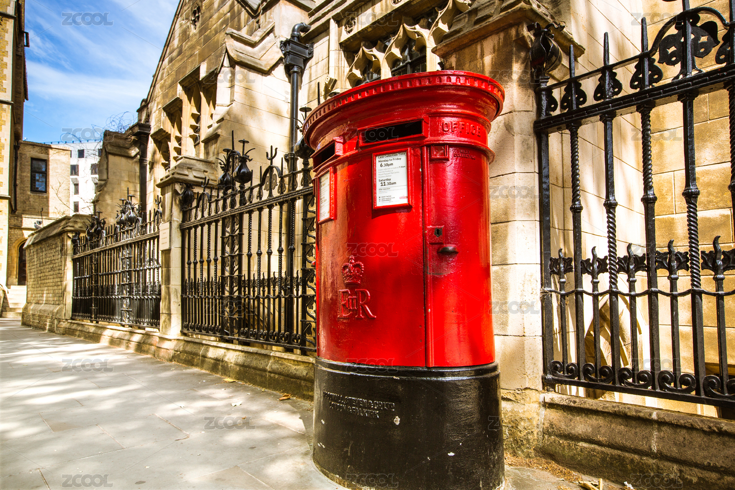 英國(guó)倫敦街頭傳統(tǒng)復(fù)古紅色郵筒