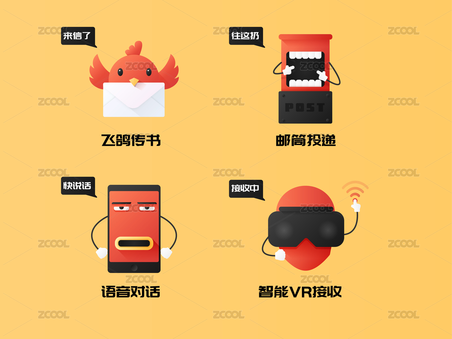 描述通訊發(fā)展過去與未來的圖標(biāo)設(shè)計(jì)